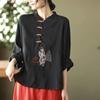 Этнический стиль Большой размер Хлопковая и льняная рубашка Женская весна и осень Длинный рукав Топ с дисковыми пуговицами Свободный топ с литературной вышивкой
