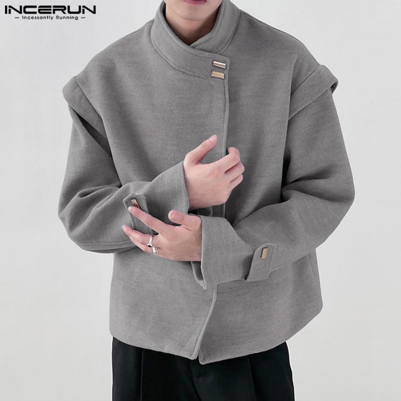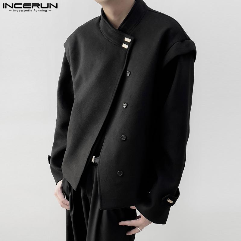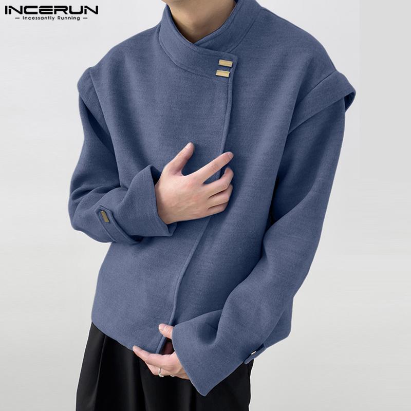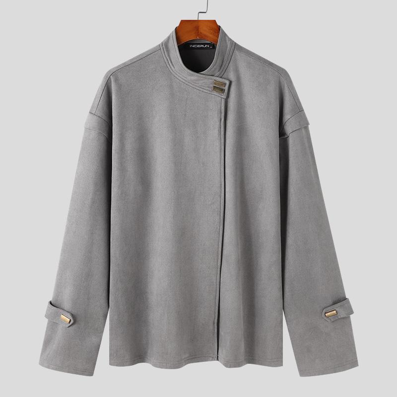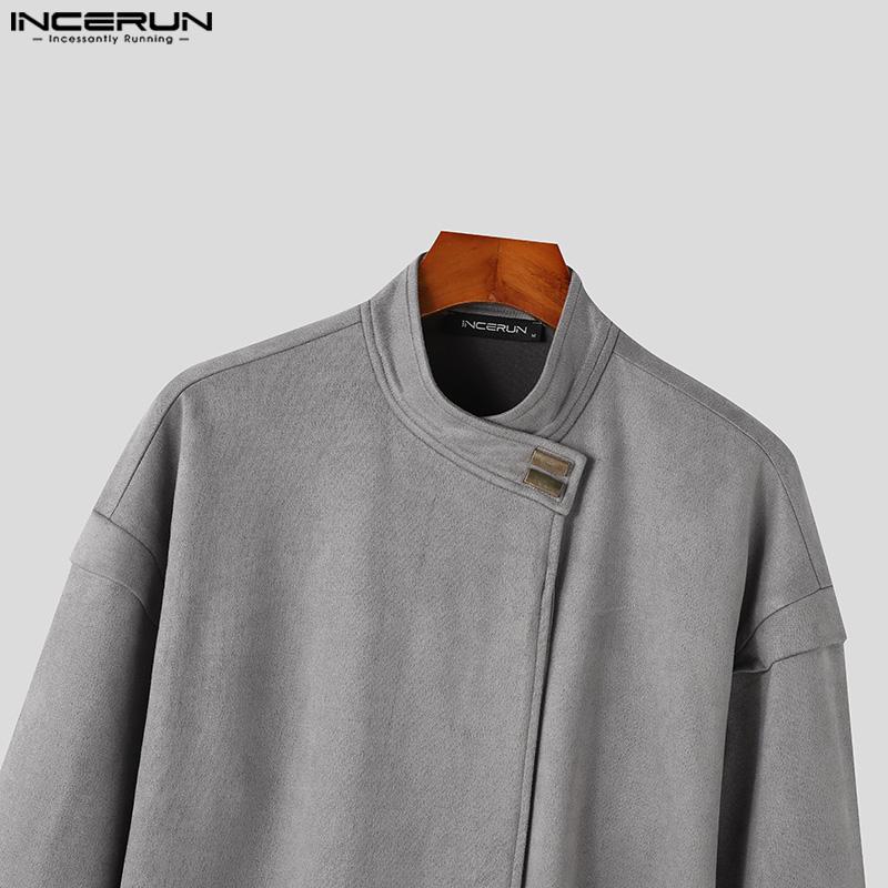 INCERUN Мужские без воротника с длинным рукавом на пуговицах свободные куртки пальто