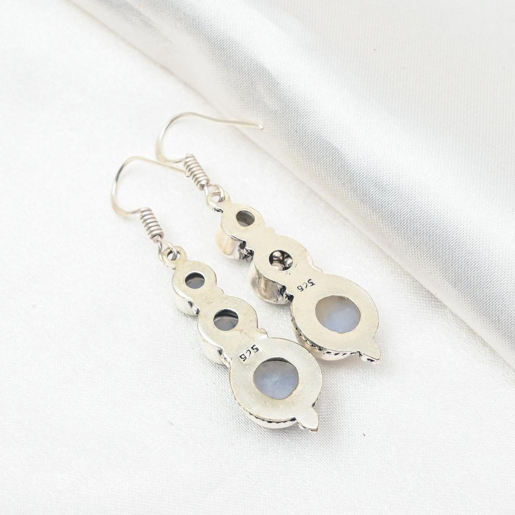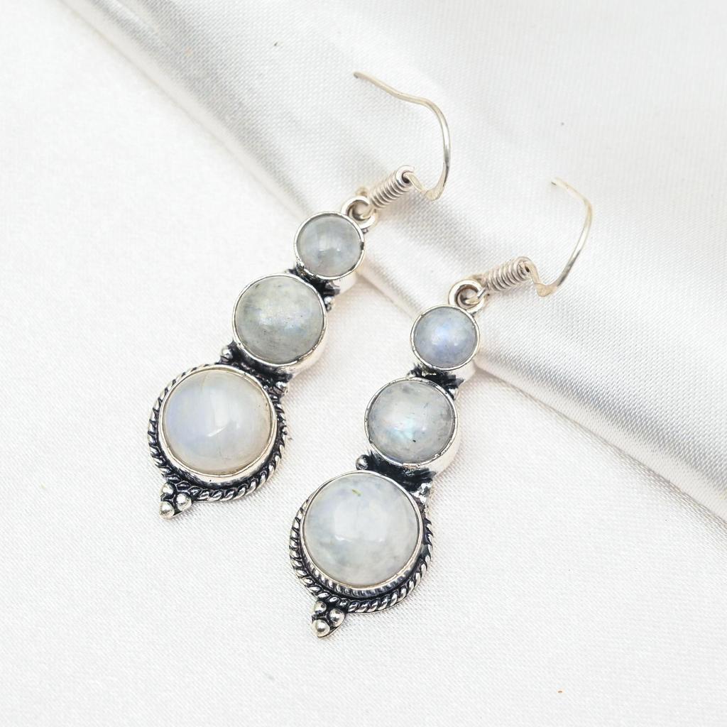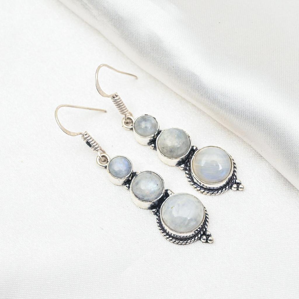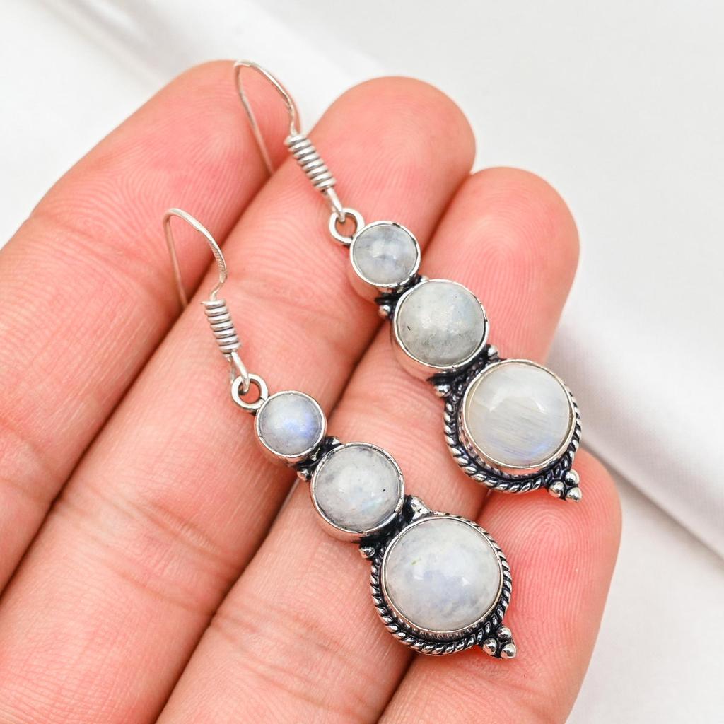Серьги с радужным лунным камнем, драгоценные камни, серьги из цельного серебра 925 пробы, красивые ювелирные серьги ручной работы