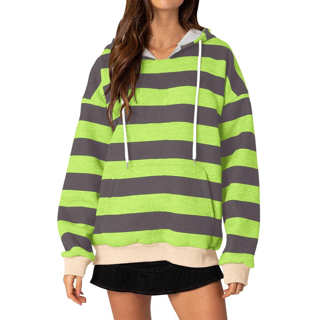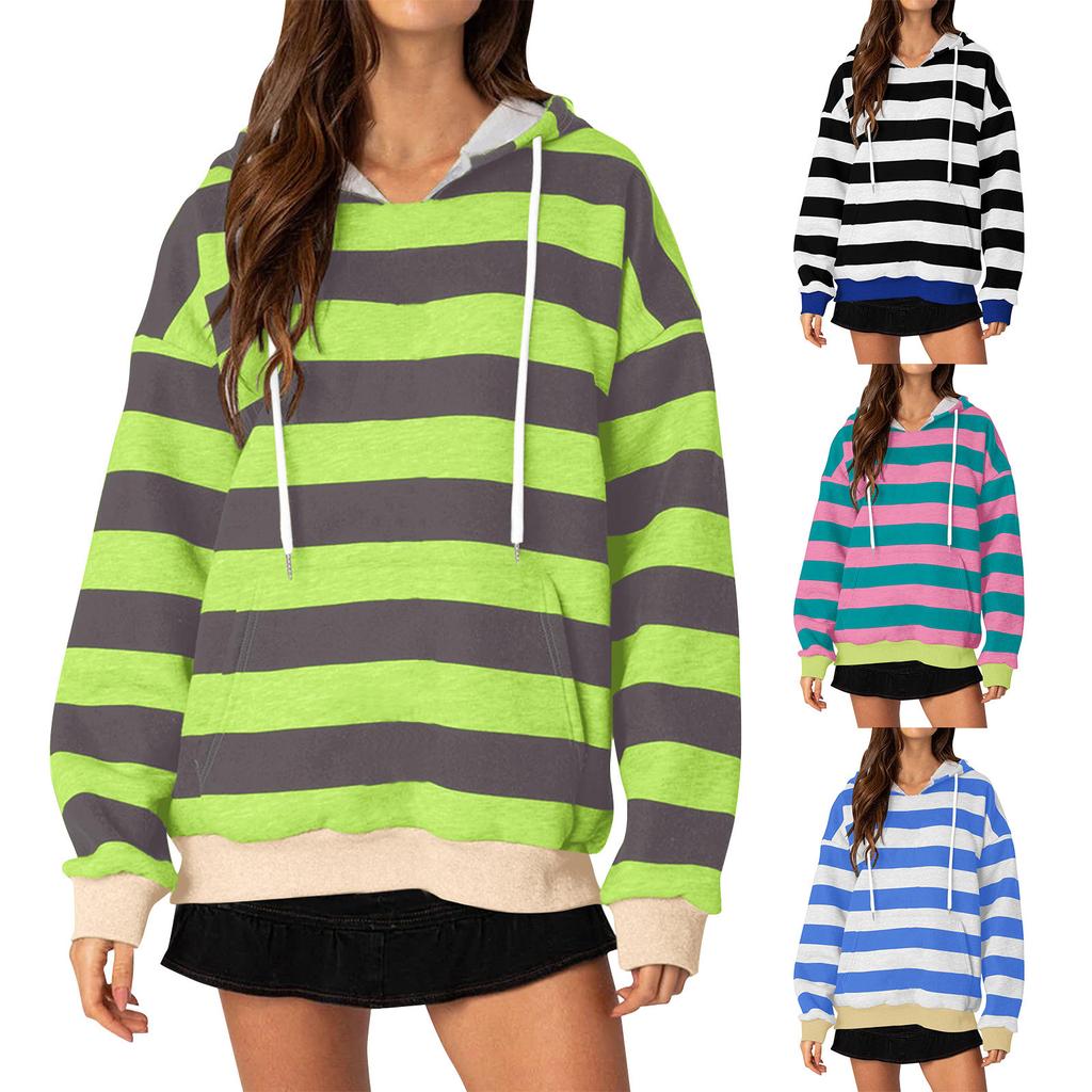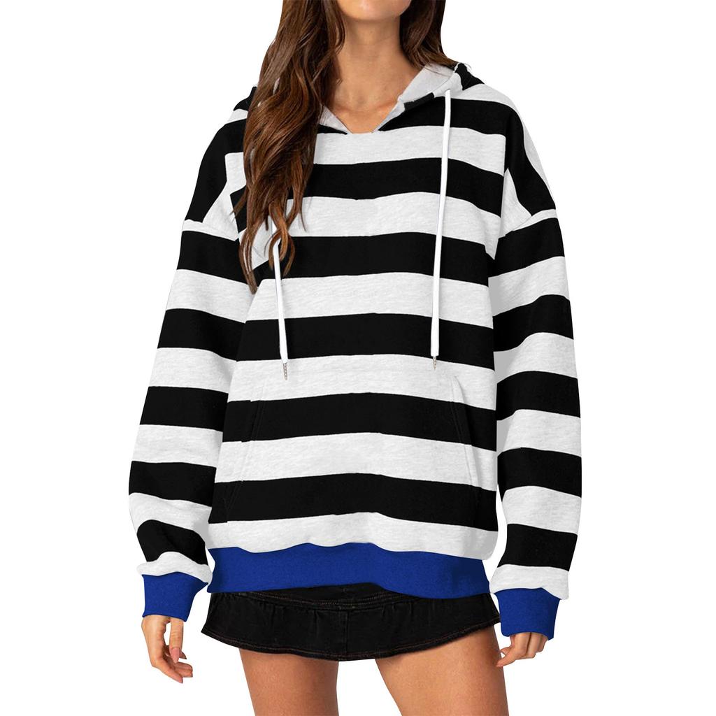 Женская повседневная свободная толстовка с капюшоном и длинными рукавами в полоску с принтом, топ