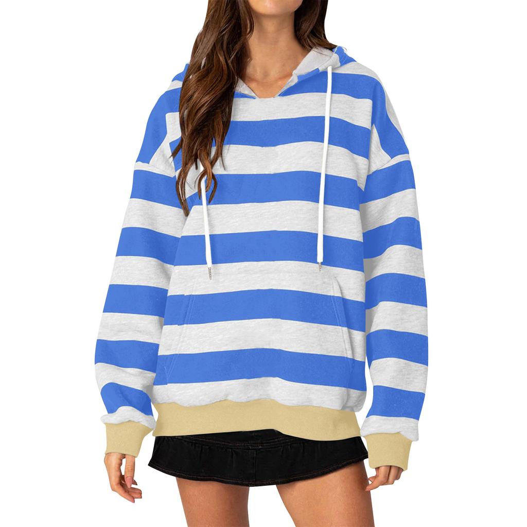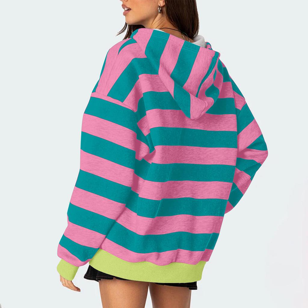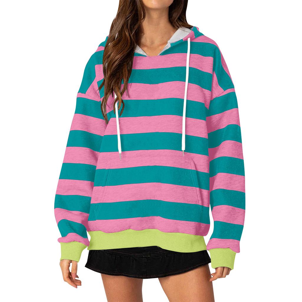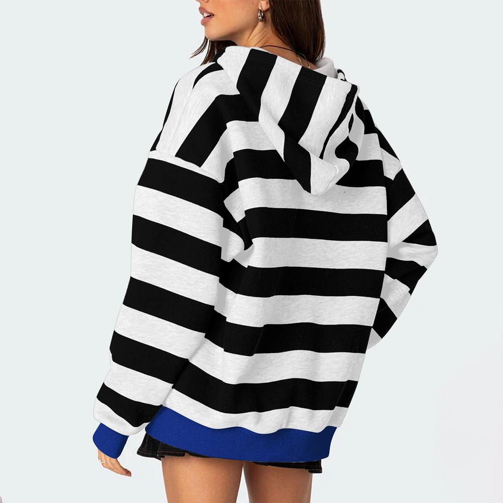 Женская повседневная свободная толстовка с капюшоном и длинными рукавами в полоску с принтом, топ