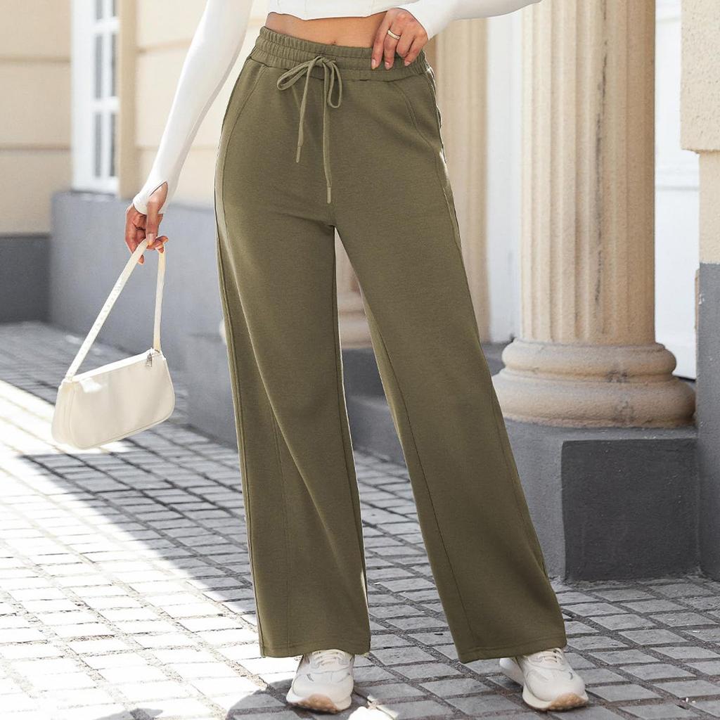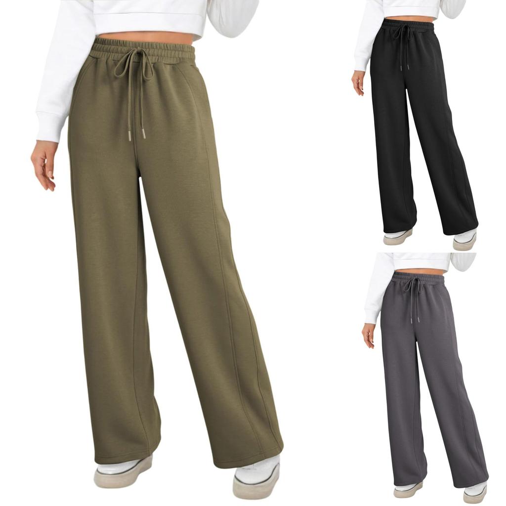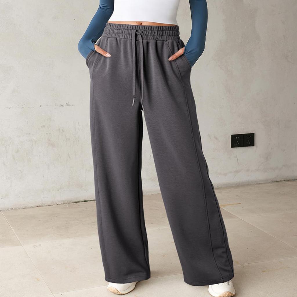 Женские спортивные брюки с высокой талией и карманами, спортивные брюки, однотонные повседневные брюки
