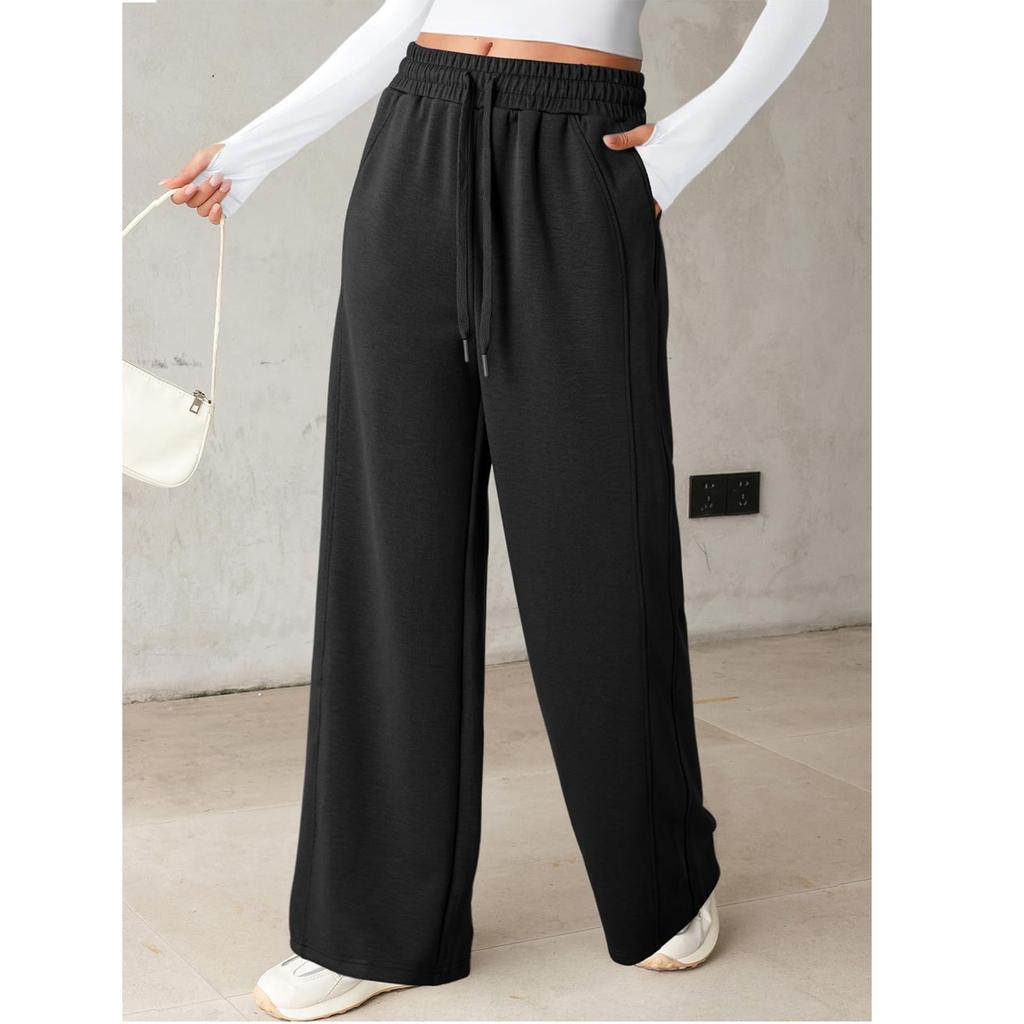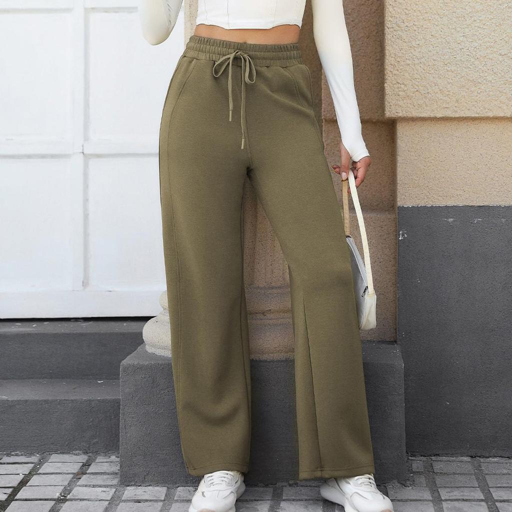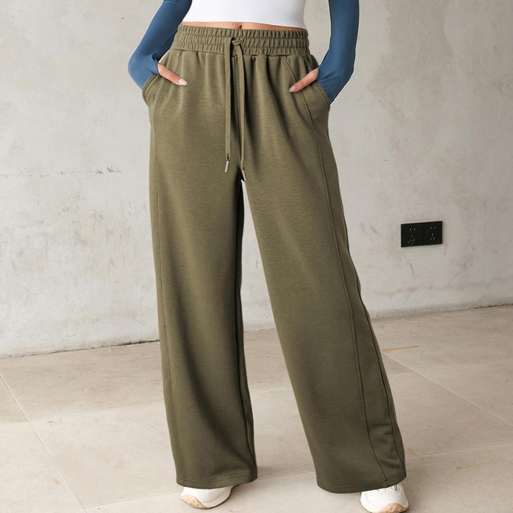 Женские спортивные брюки с высокой талией и карманами, спортивные брюки, однотонные повседневные брюки