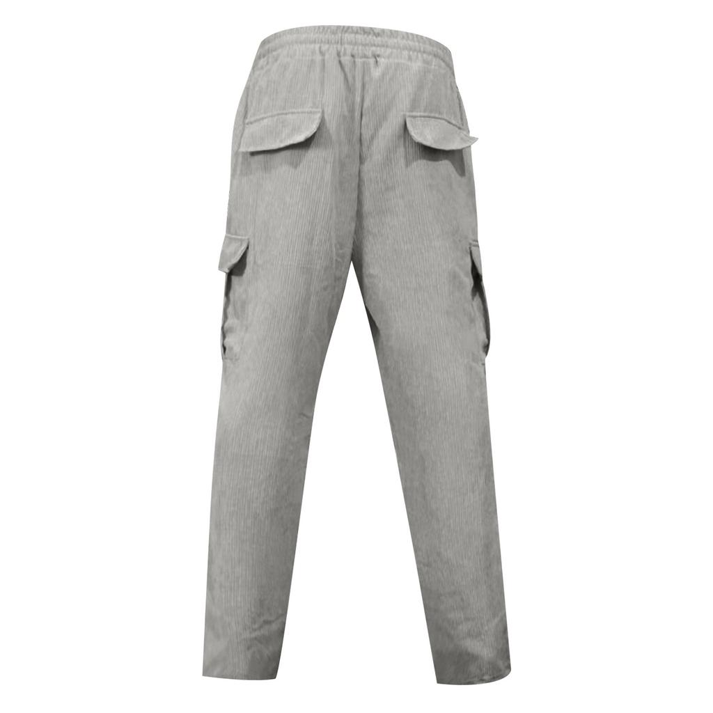Мужские осенние вельветовые повседневные брюки с дышащими широкими штанинами и множеством карманов, прямые брюки