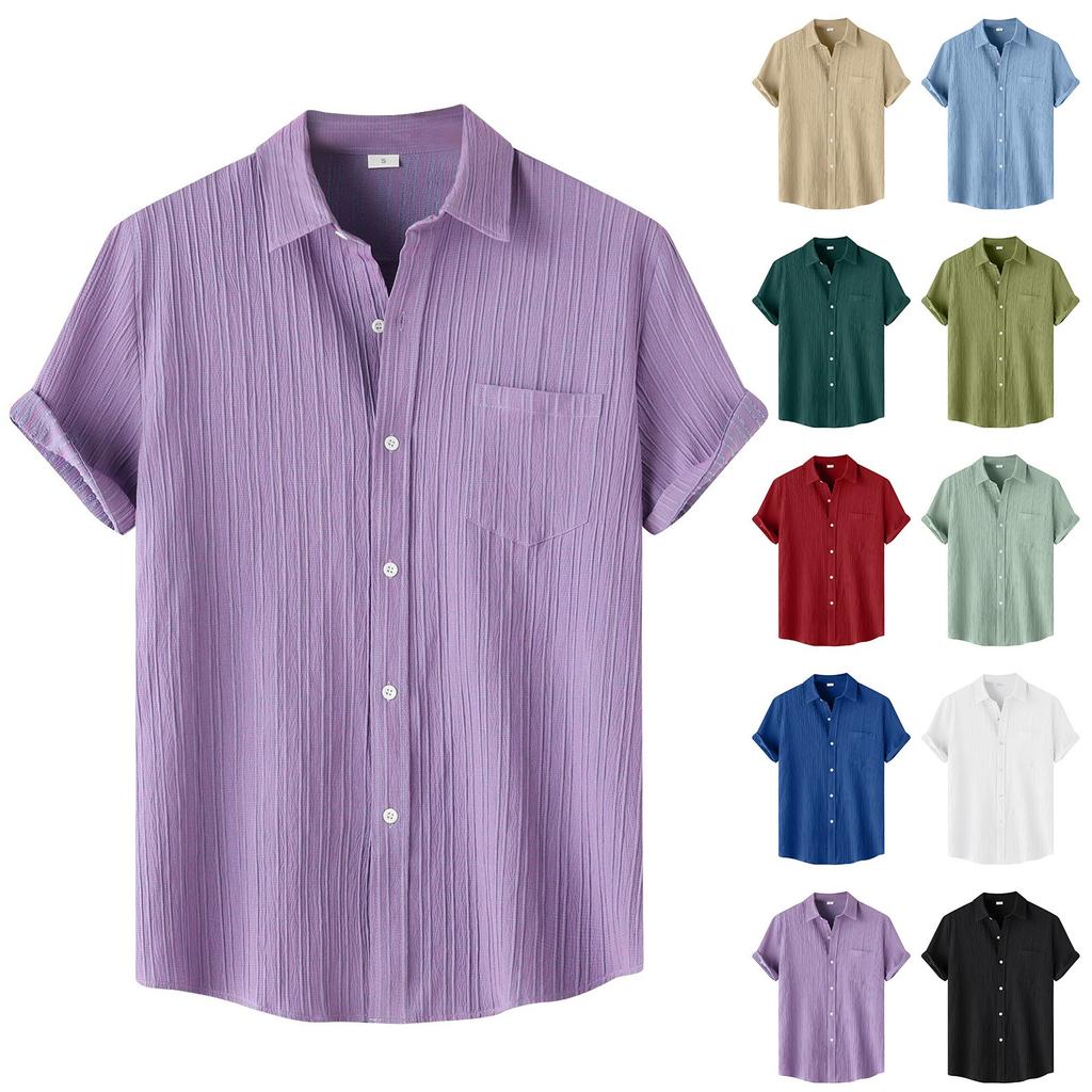 Мужская повседневная однобортная рубашка в полоску с одним карманом и короткими рукавами — купить товар онлайн с бесплатной доставкой по всему миру!