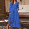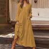 Женское повседневное платье макси с длинными рукавами, свободное многослойное платье с V-образным вырезом на пуговицах и высокой талией — купить товар онлайн с бесплатной доставкой по всему миру!