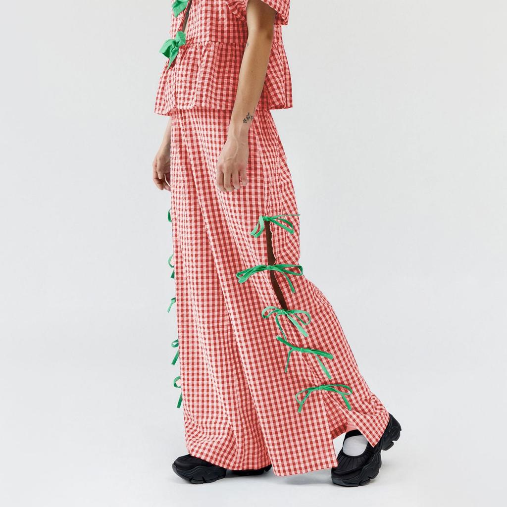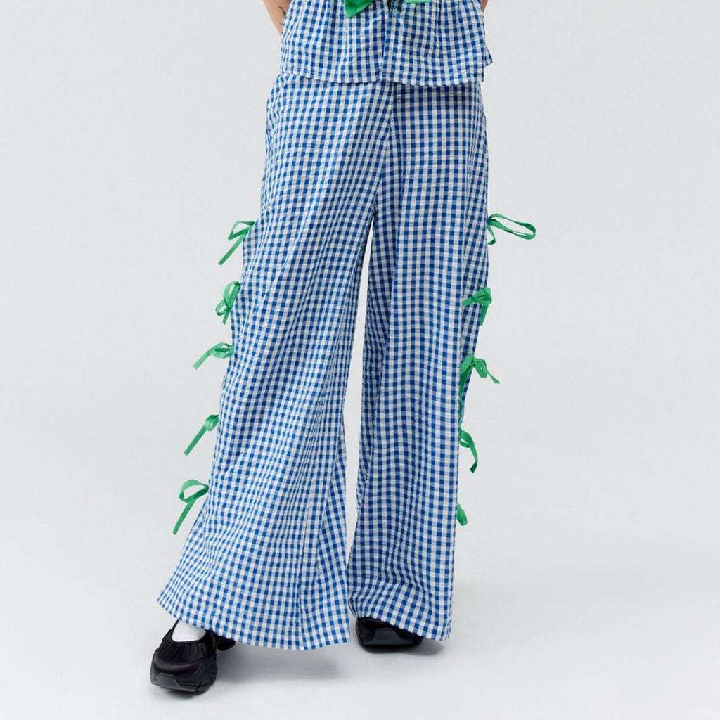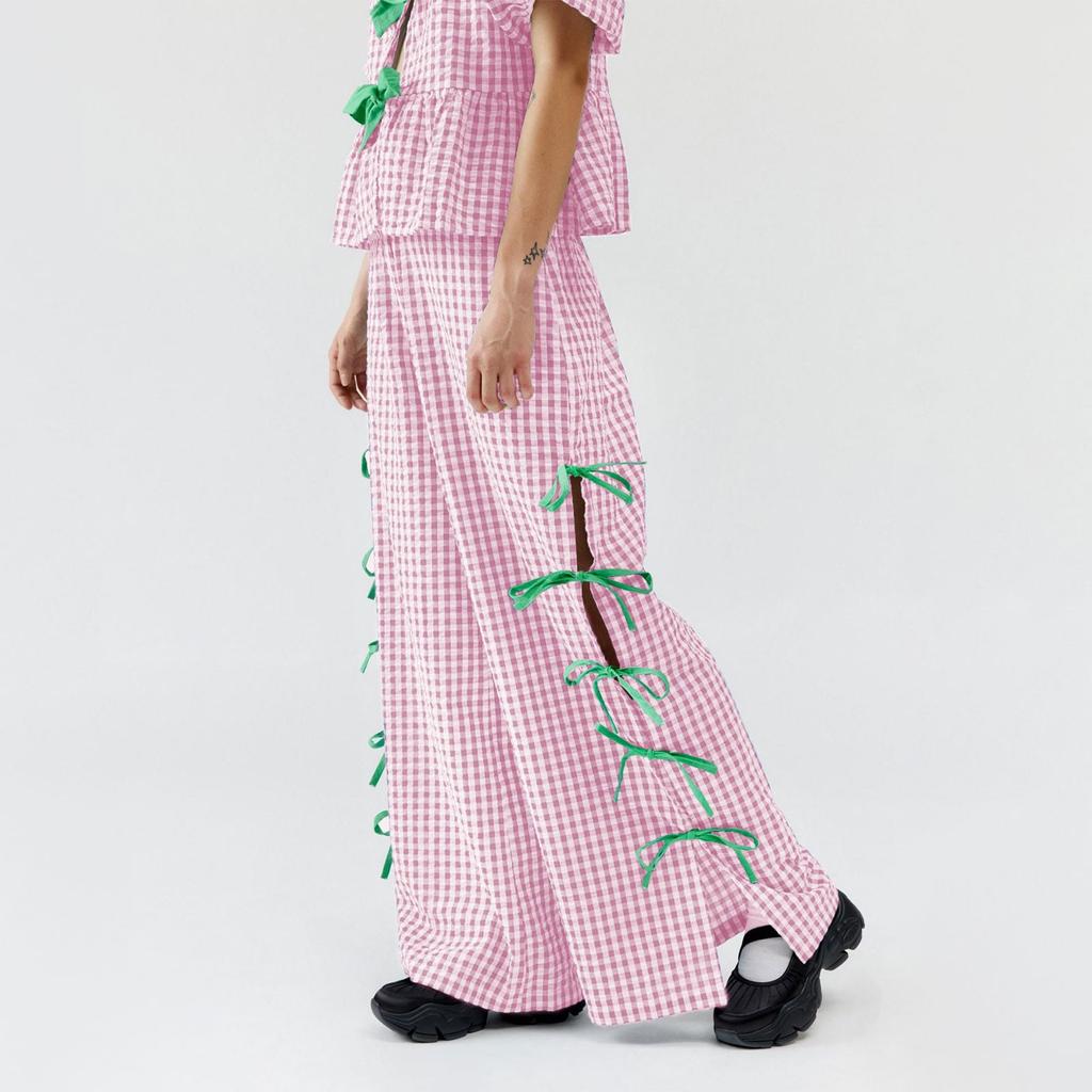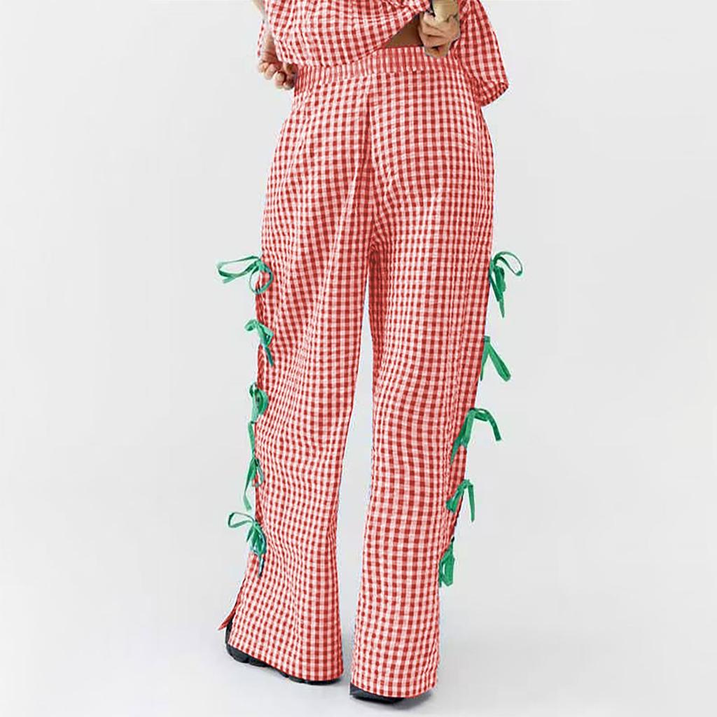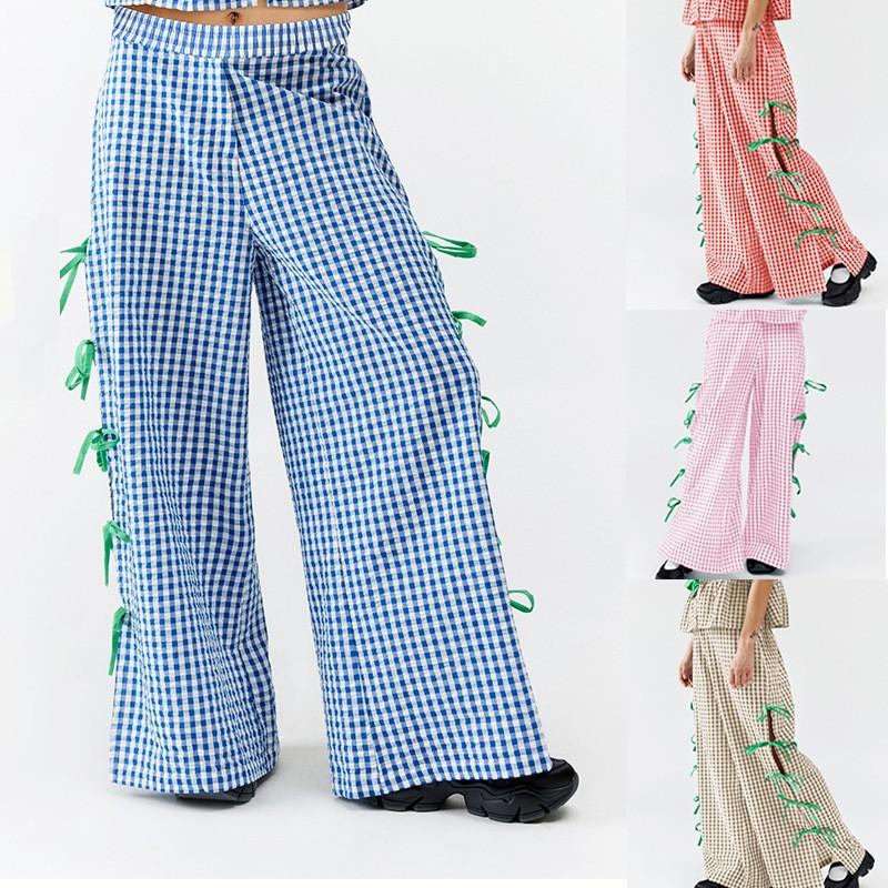 Женские клетчатые брюки Модные клетчатые брюки с тонким поясом и разрезом