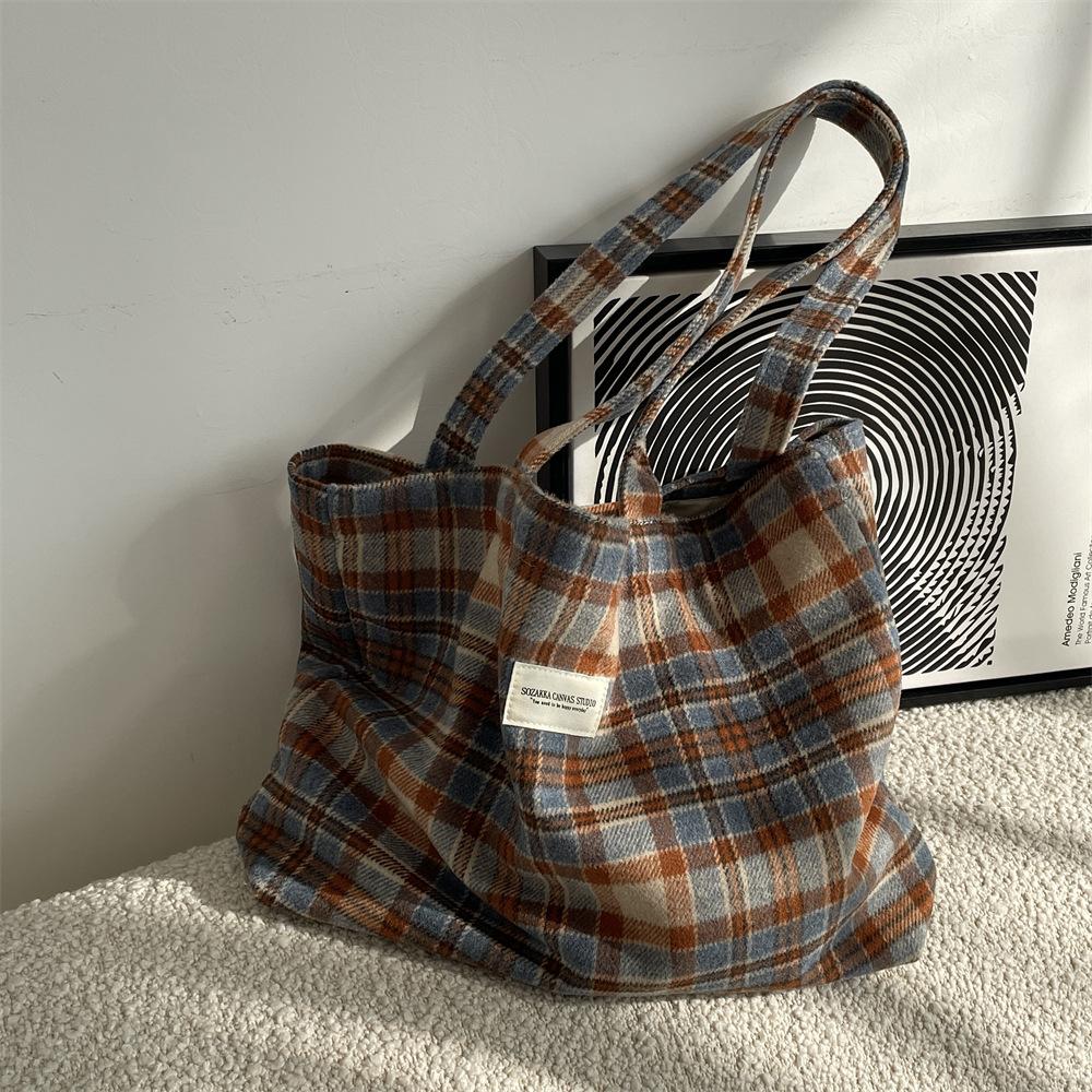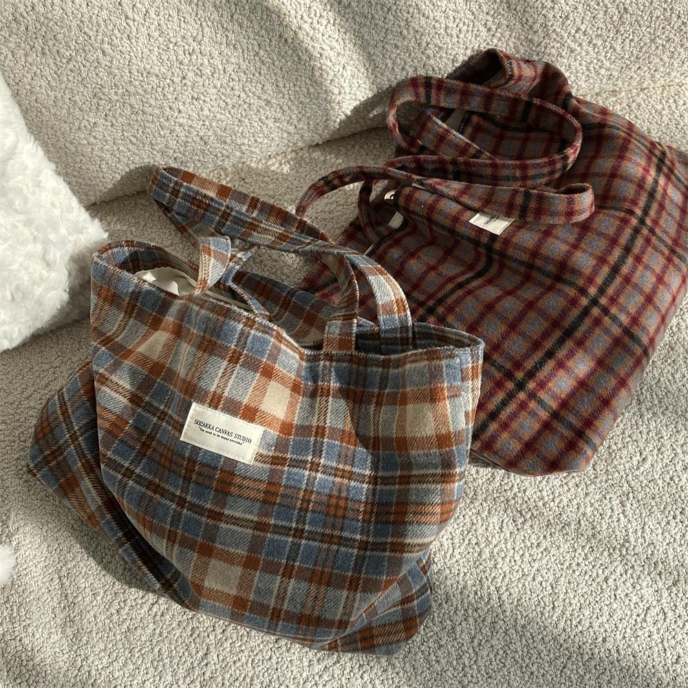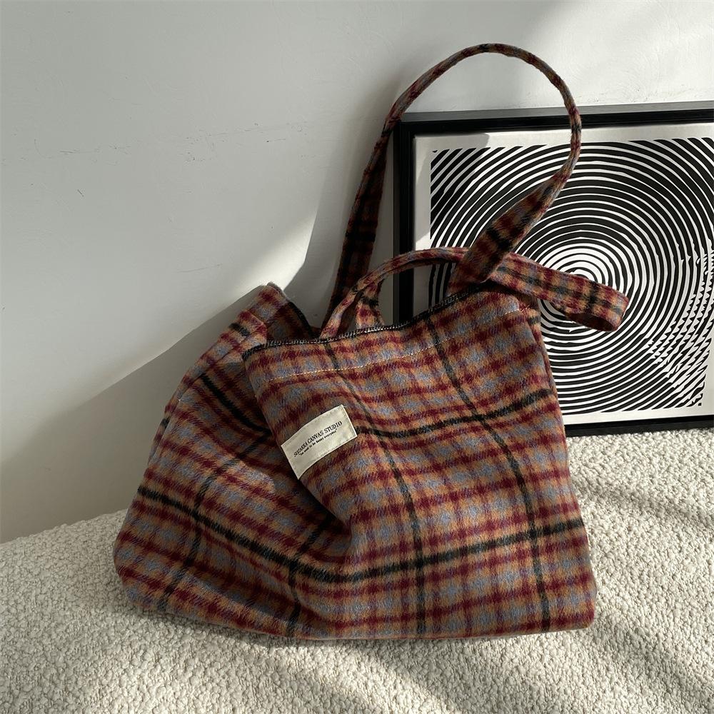 Осенне-зимняя новая ретро шерстяная клетчатая сумка большой вместимости для поездок на работу женская сумка через плечо