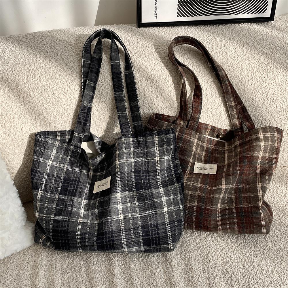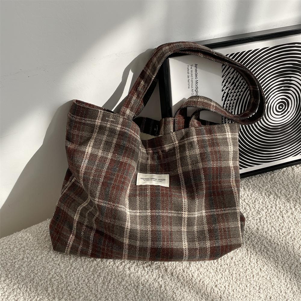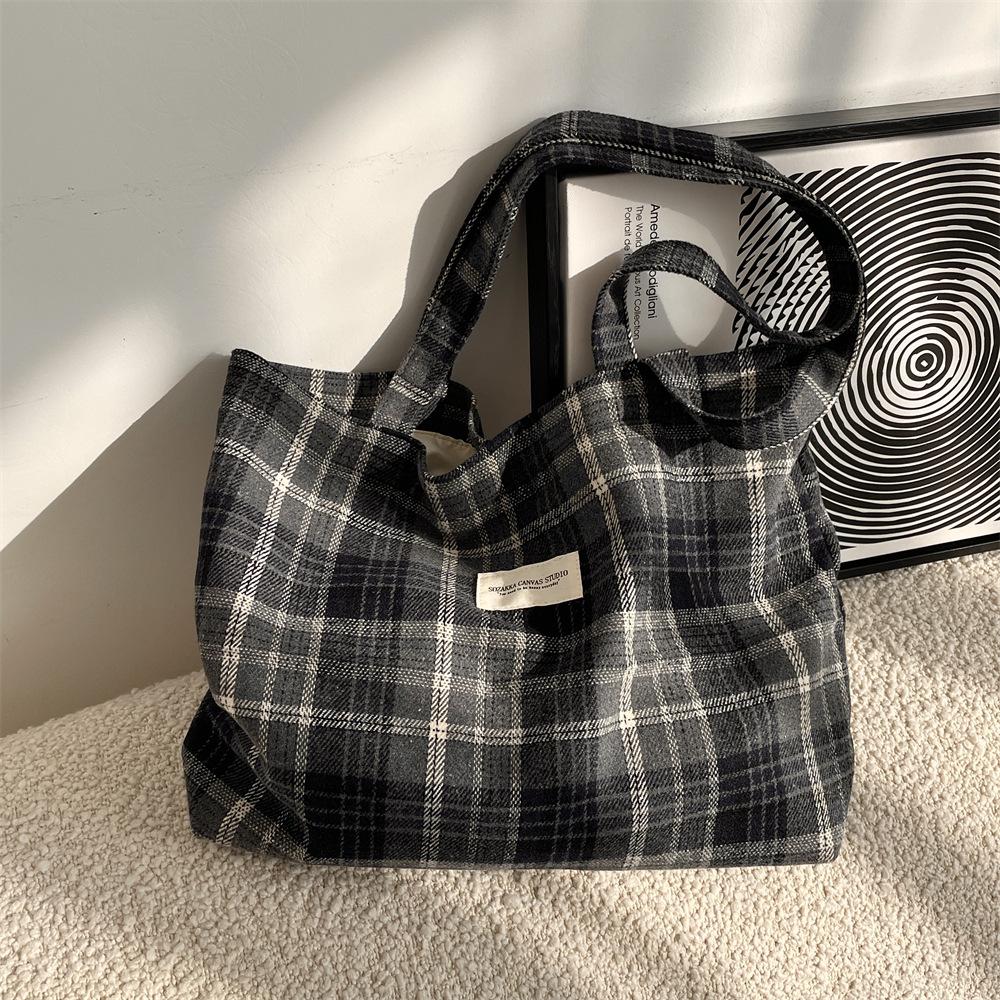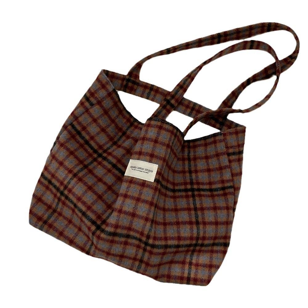 Осенне-зимняя новая ретро шерстяная клетчатая сумка большой вместимости для поездок на работу женская сумка через плечо