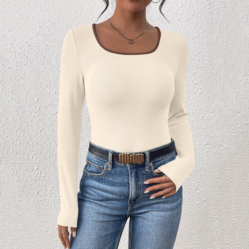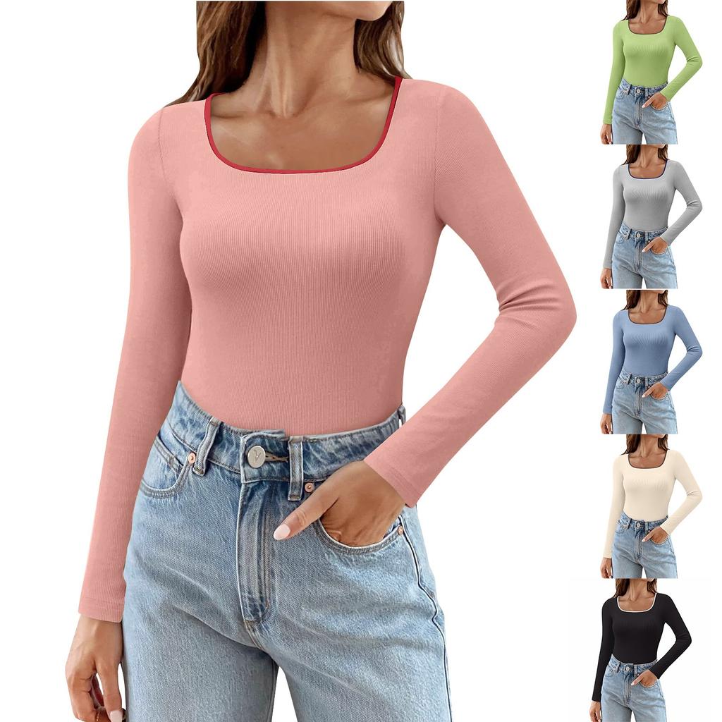 Характерная черта: Топы с длинным рукавом 2024 / Рубашки с квадратным вырезом для женщин / Топы-туники для ношения с леггинсами / Футболки для женщин / Сексуальные топы для женщин / Повседневные топы для женщин / Простые блузки для женщин / Облегающие футболки для женщин / Майка для женщин / Трикотаж в рубчик Топы для женщин/женская футболка весна-осень/топы цветных блоков/эластичные пуловеры