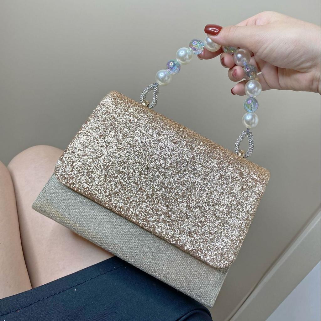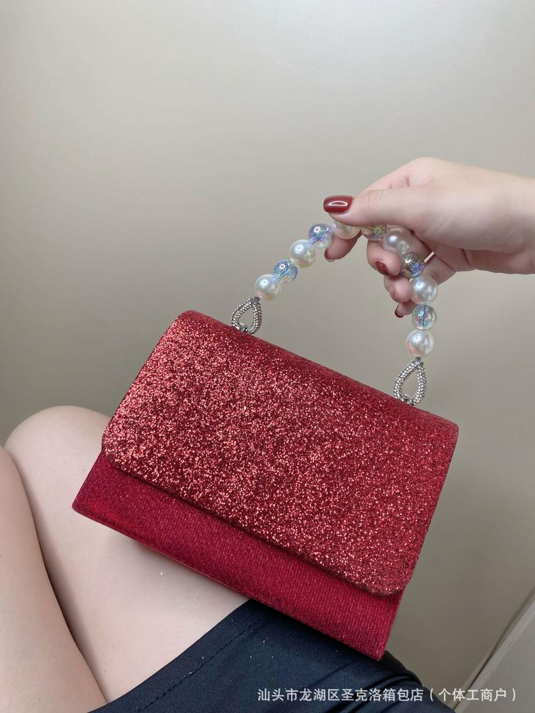 Сумка Модная сумка для ужина Простая женская блестящая сумка Портативная маленькая квадратная сумка с жемчужными бусинами Знаменитость Банкетное платье