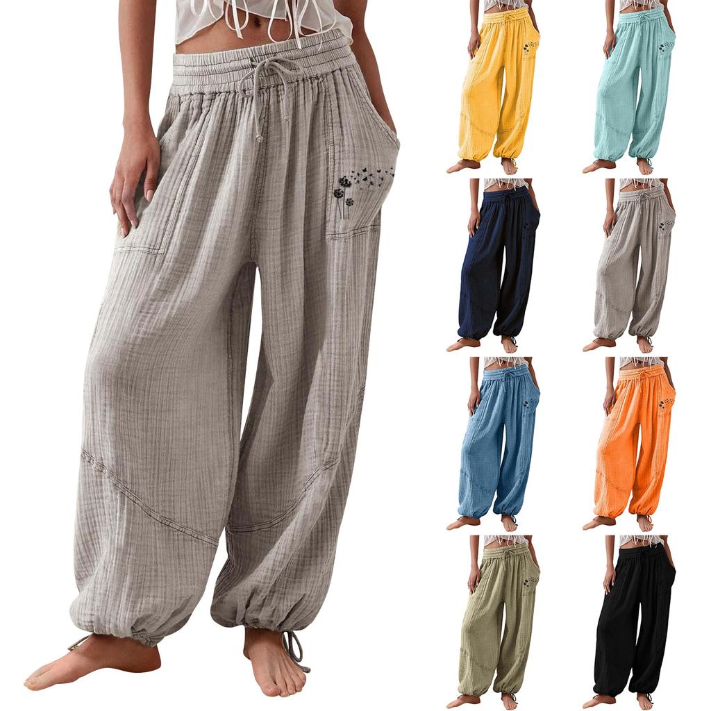 Женские модные свободные однотонные повседневные брюки с эластичной резинкой на талии и карманами — купить товар онлайн с бесплатной доставкой по всему миру!