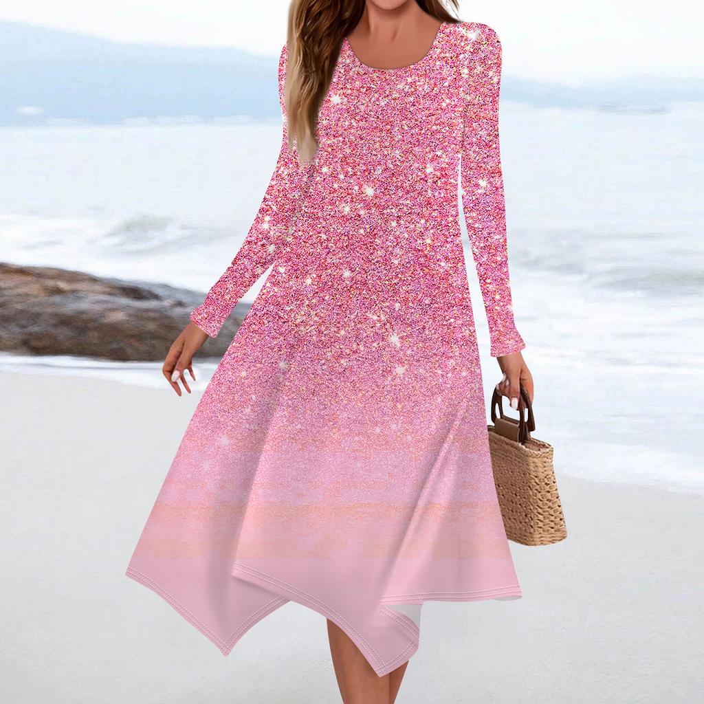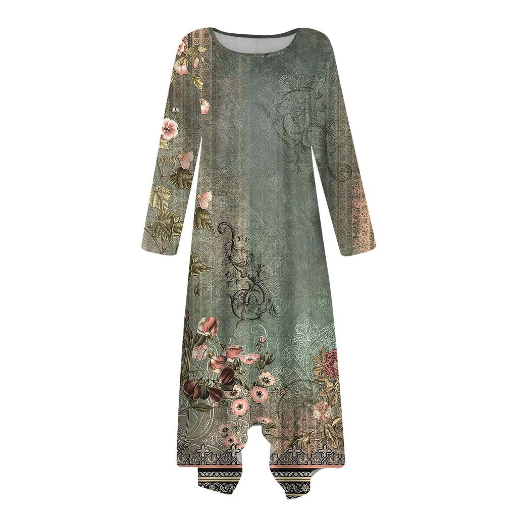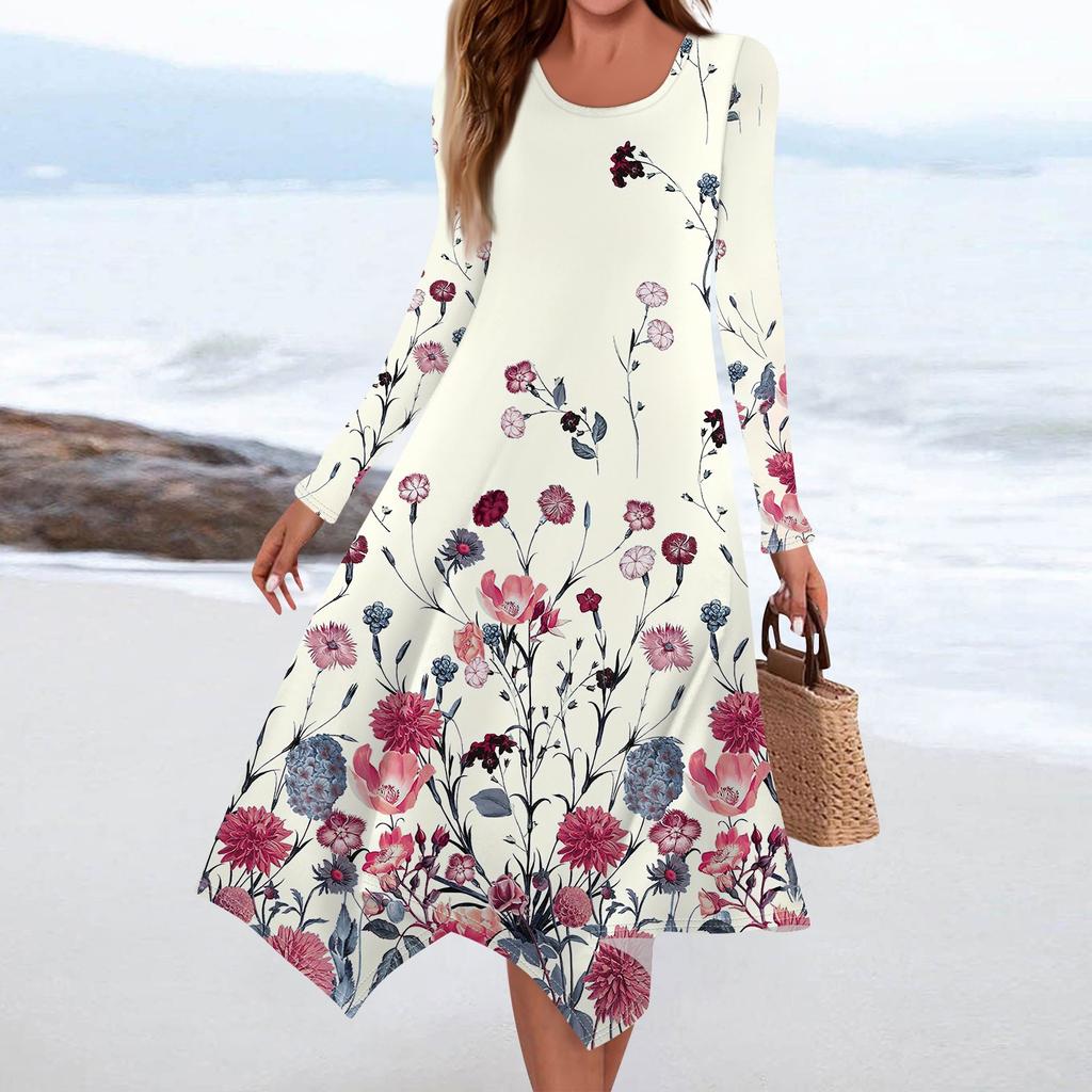 Женское повседневное модное платье миди с круглым вырезом и длинными рукавами с принтом и нерегулярным подолом