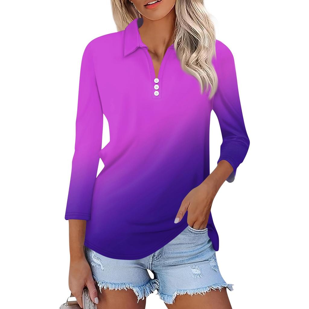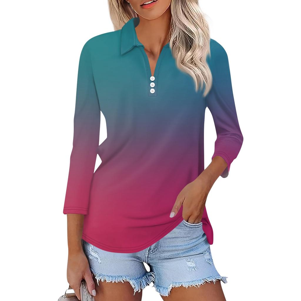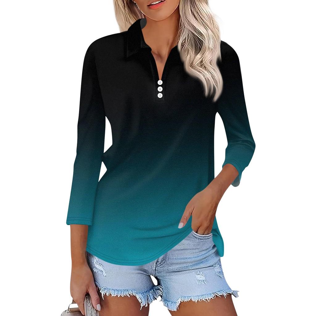 Женская модная повседневная рубашка с отворотом и рукавом 3/4, женские топы на пуговицах