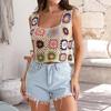 Женская ручная вышивка крючком, полая трикотажная майка, женская короткая майка для пляжного отдыха, без рукавов