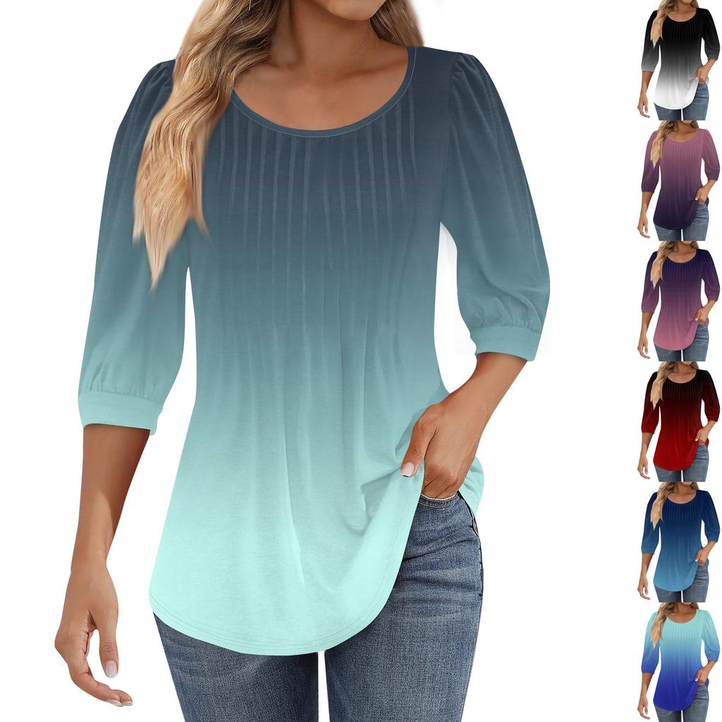 Женские туники с пышными рукавами 3/4, топы, плиссированные блузки с воротником, повседневные свободные весенне-летние футболки — купить товар онлайн с бесплатной доставкой до всему миру!