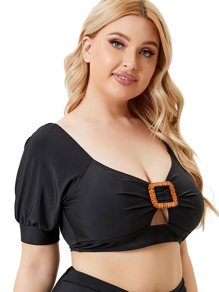 Rosegal Plus Size Рукава реглан Вырез Мягкий Бикини Топ
