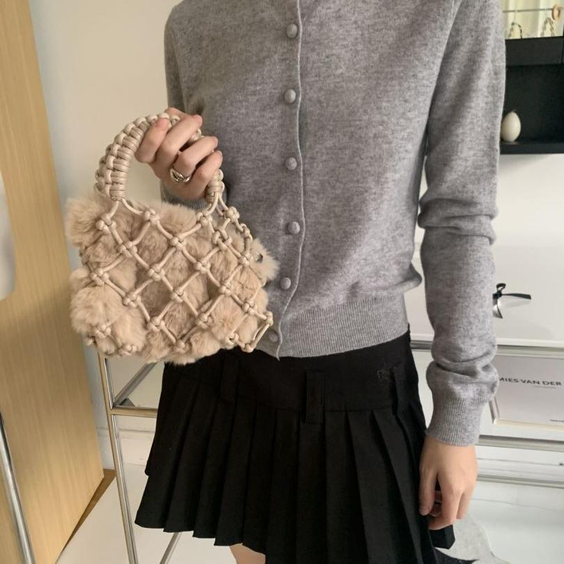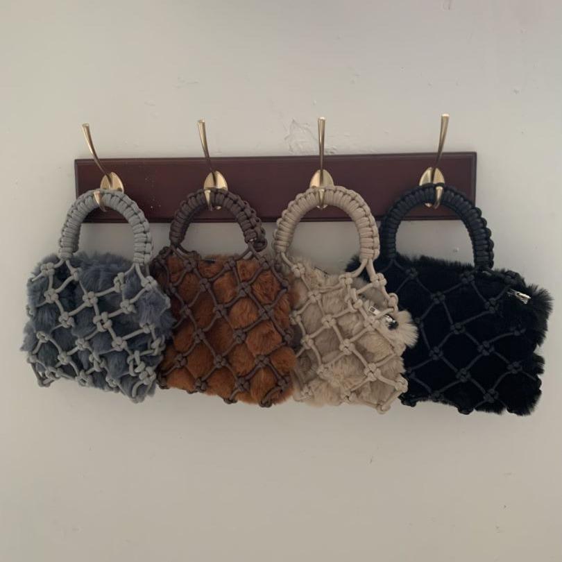 Осенне-зимняя новая мини-сумочка из искусственной веревки ручной работы с сеткой, плюшевая внутренняя сумка с модной повседневной сумкой