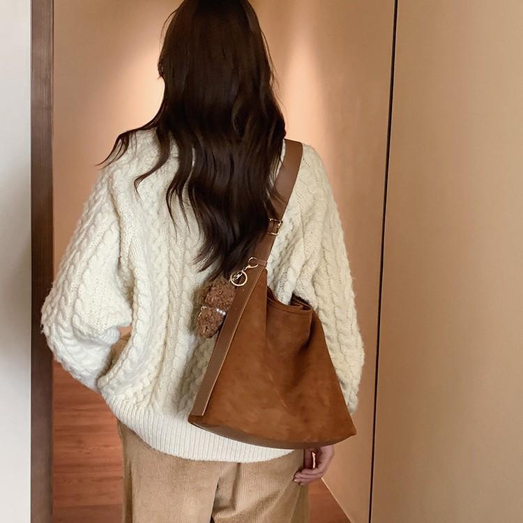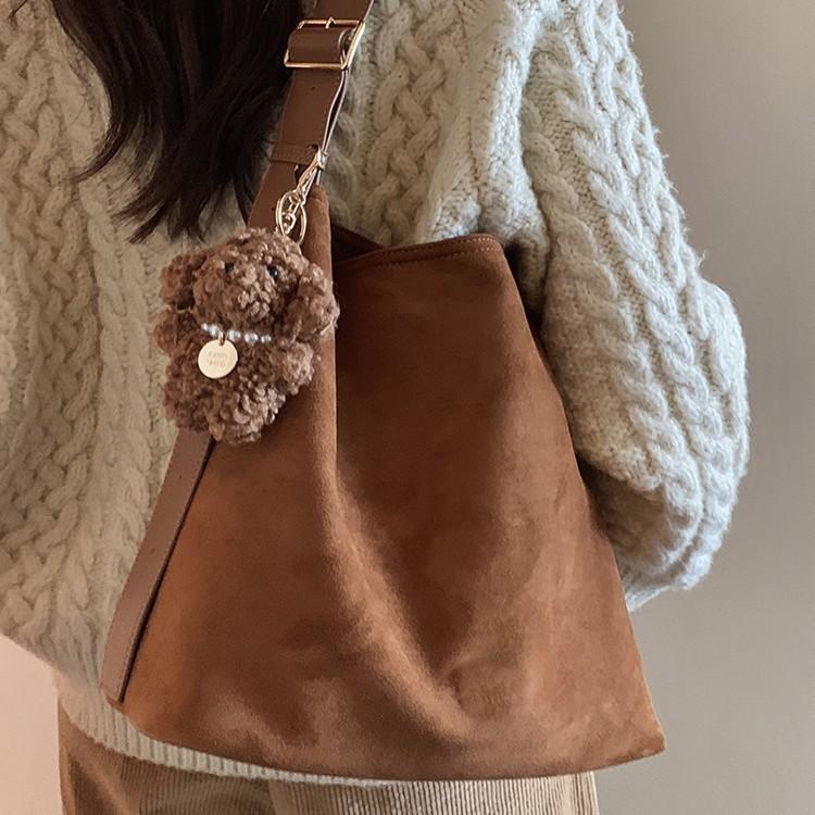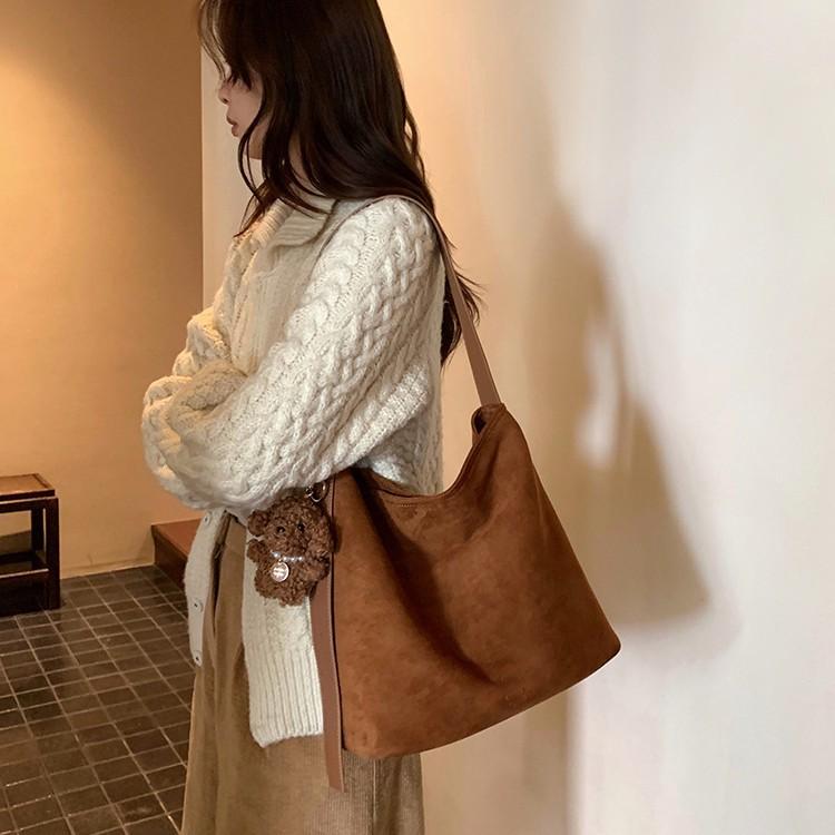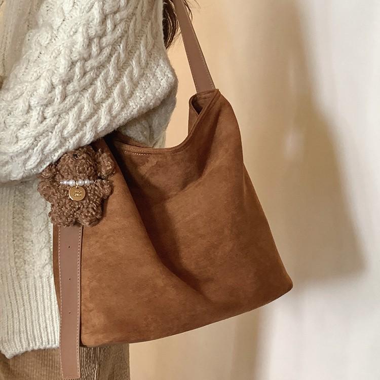 Корейская версия осенне-зимняя фланелевая сумка-тоут для женщин 2024 года, новая релаксационная большая сумка, сумка-мессенджер через плечо, женская сумка-ведро