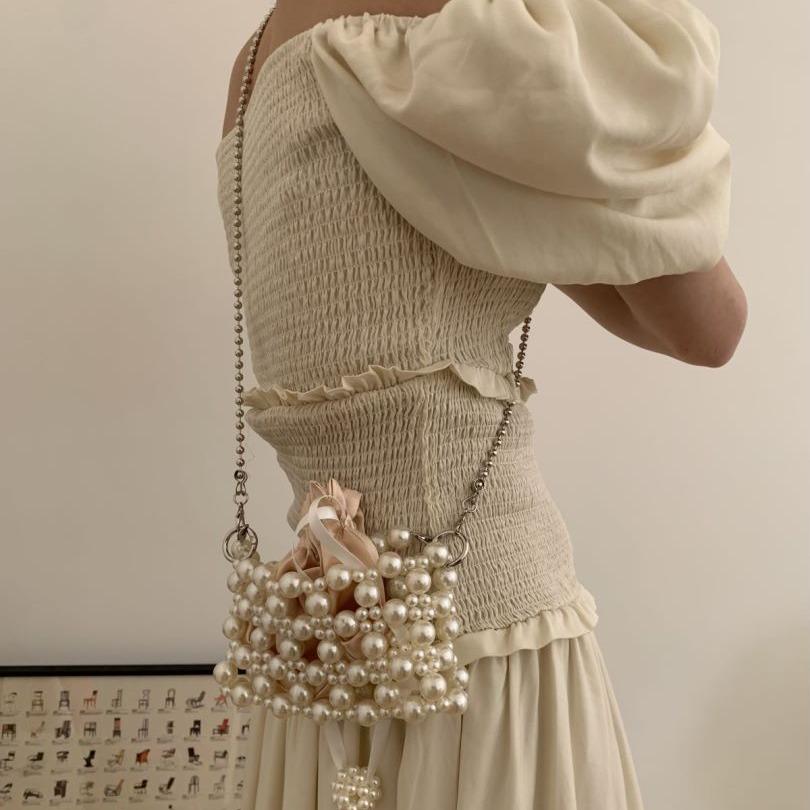 2024 летняя новая сумочка fairy wind с жемчужной цепочкой, плетеная мини-сумка-мессенджер с высокой текстурой и помадой
