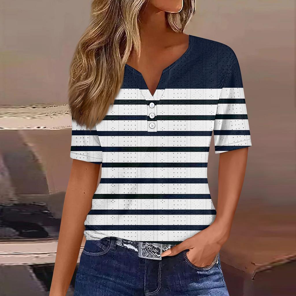 Женская повседневная футболка с v-образным вырезом и короткими рукавами, декоративная футболка на пуговицах, топ