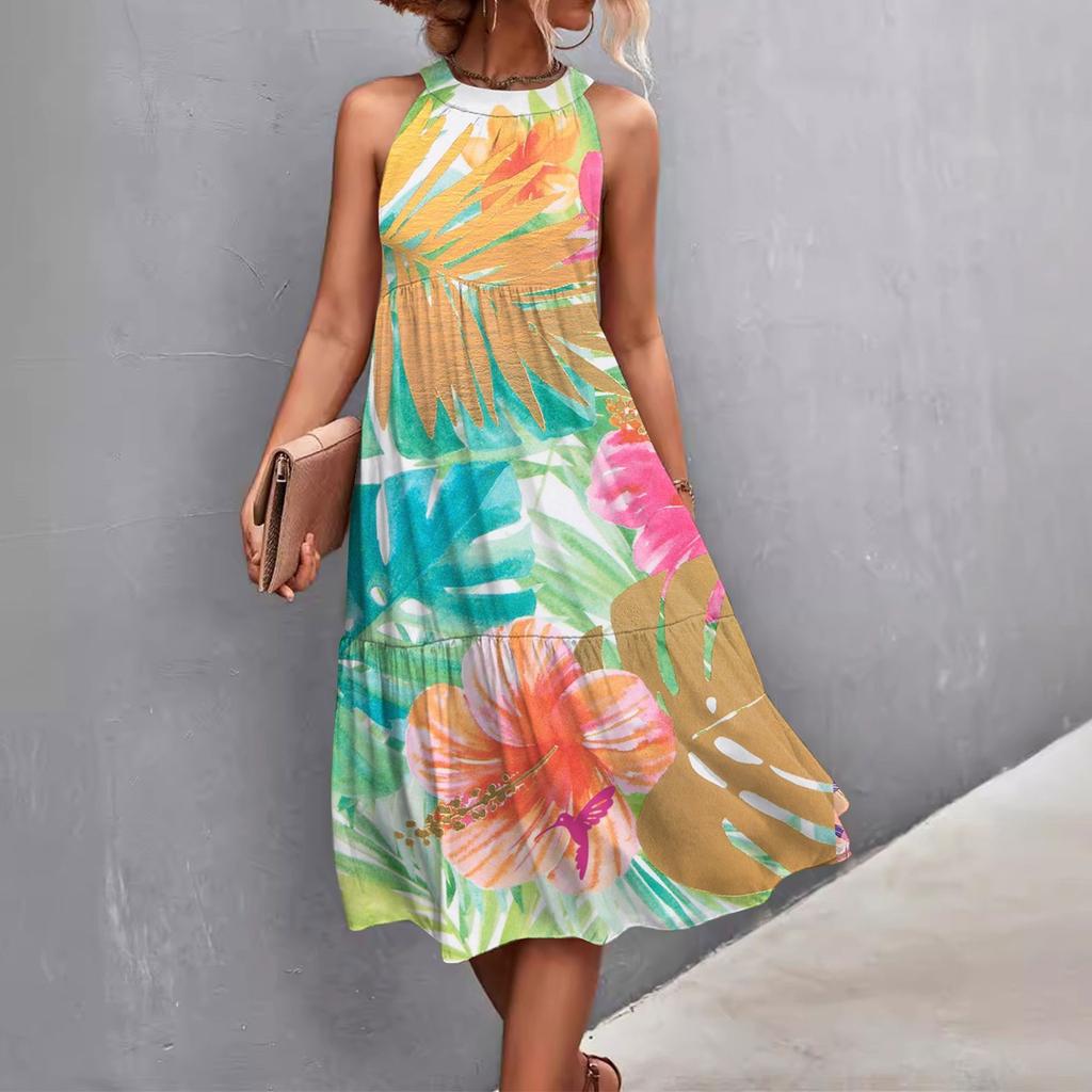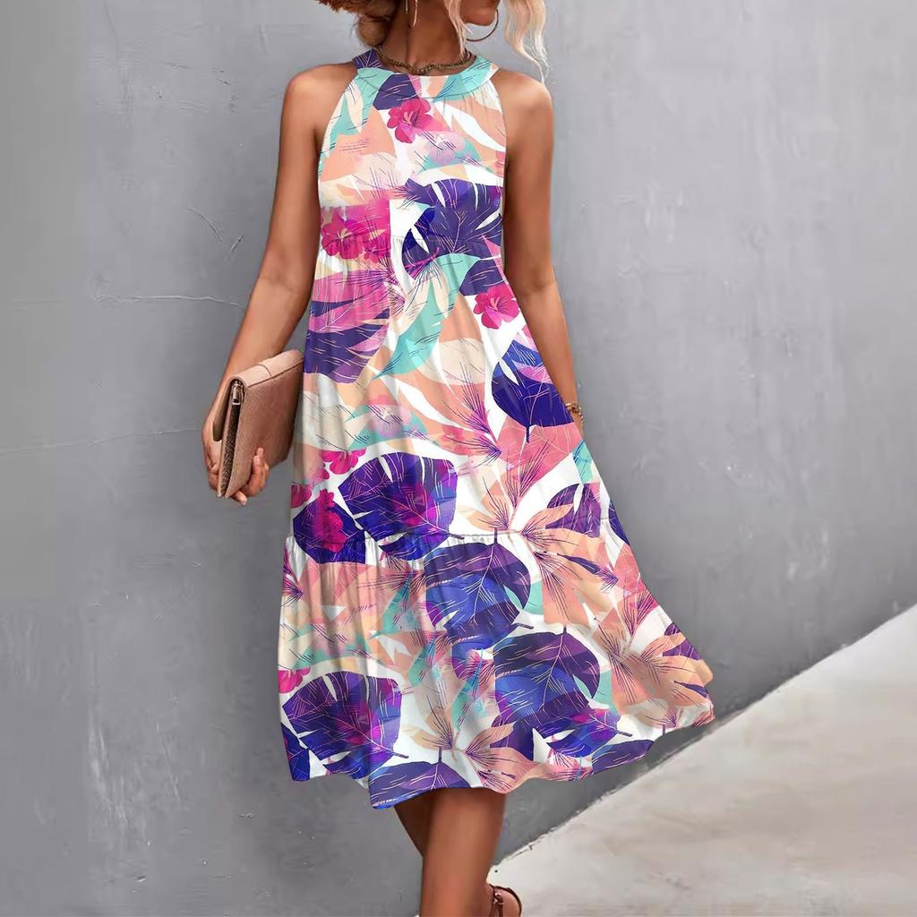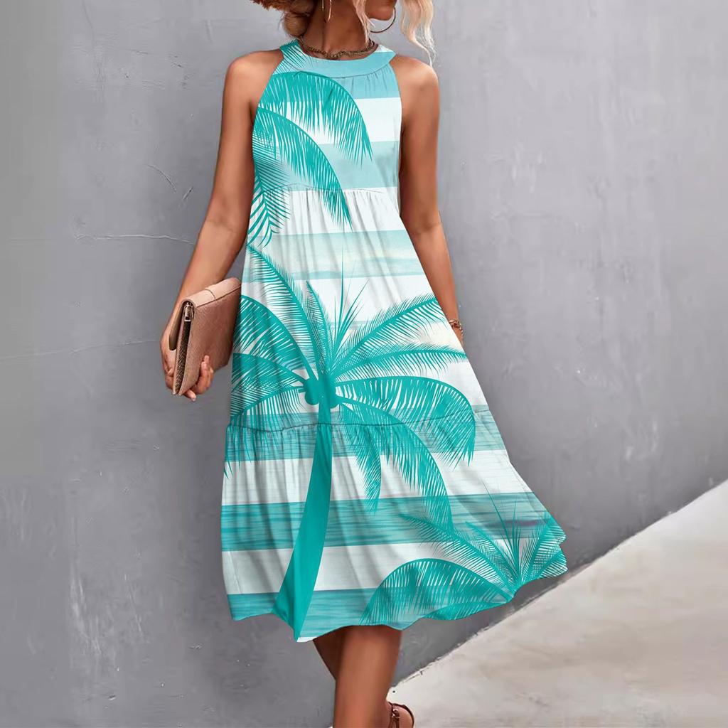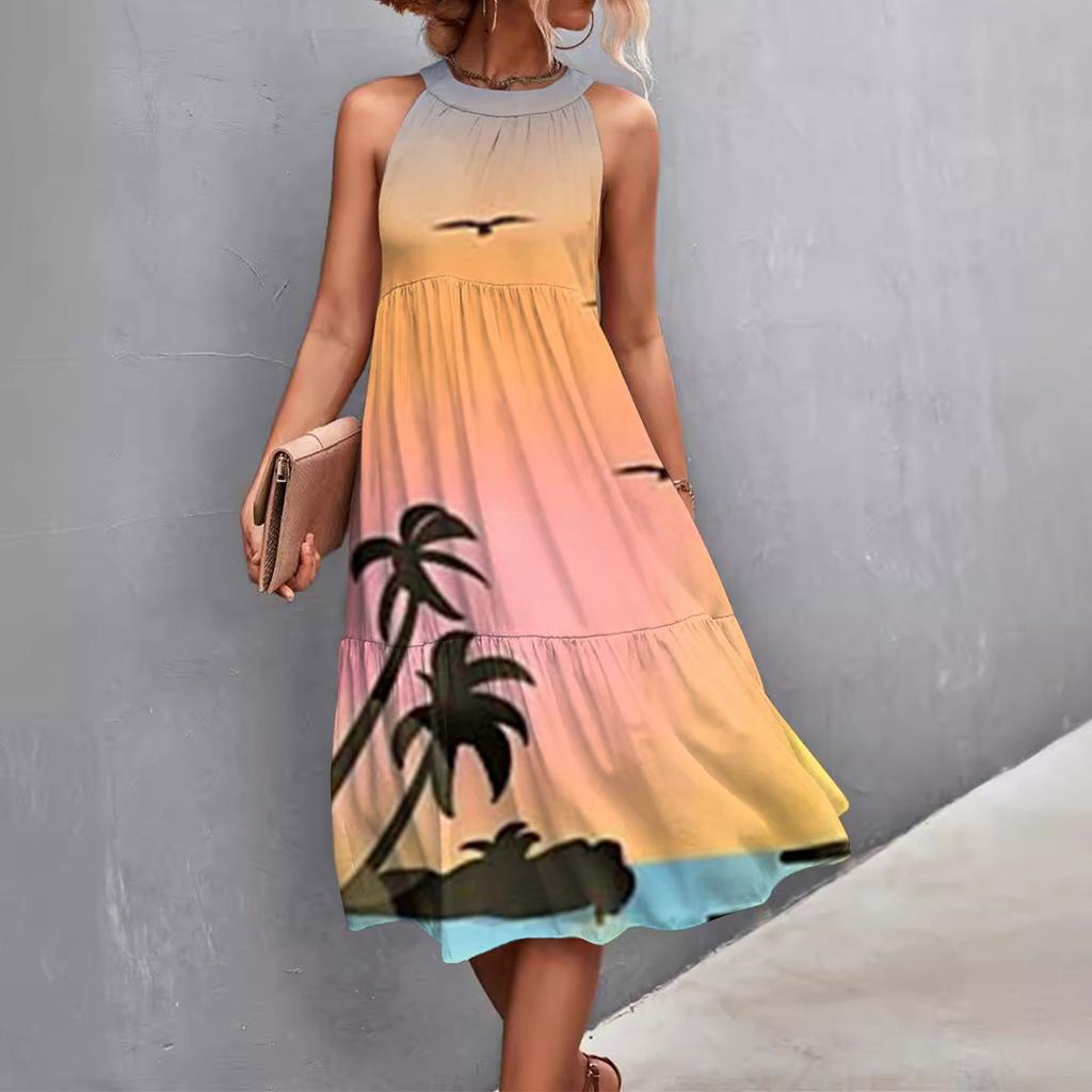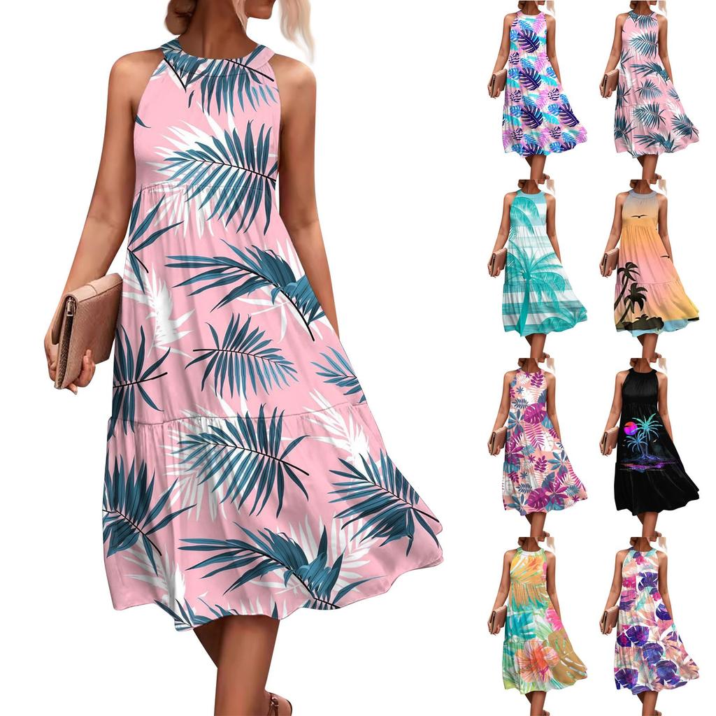 Женские летние свободные повседневные пляжные платья без рукавов с однотонным принтом и висячим вырезом