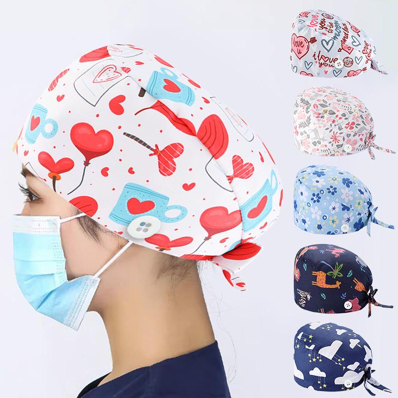 1 шт. Хлопковая регулируемая операционная шапочка унисекс рабочие шапки пылезащитная шапочка печатные шапочки для салонов красоты скраб шапочка антигрязная
