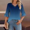 Женский повседневный топ с рукавами 3/4, летняя футболка с v-образным вырезом и пышными рукавами