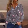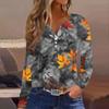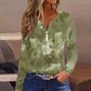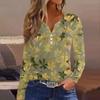 Женская модная повседневная футболка с V-образным вырезом и принтом листьев, с длинными рукавами и декоративными пуговицами