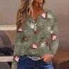 Женская модная повседневная футболка с V-образным вырезом и принтом листьев, с длинными рукавами и декоративными пуговицами — купить товар онлайн с бесплатной доставкой до всему миру!