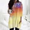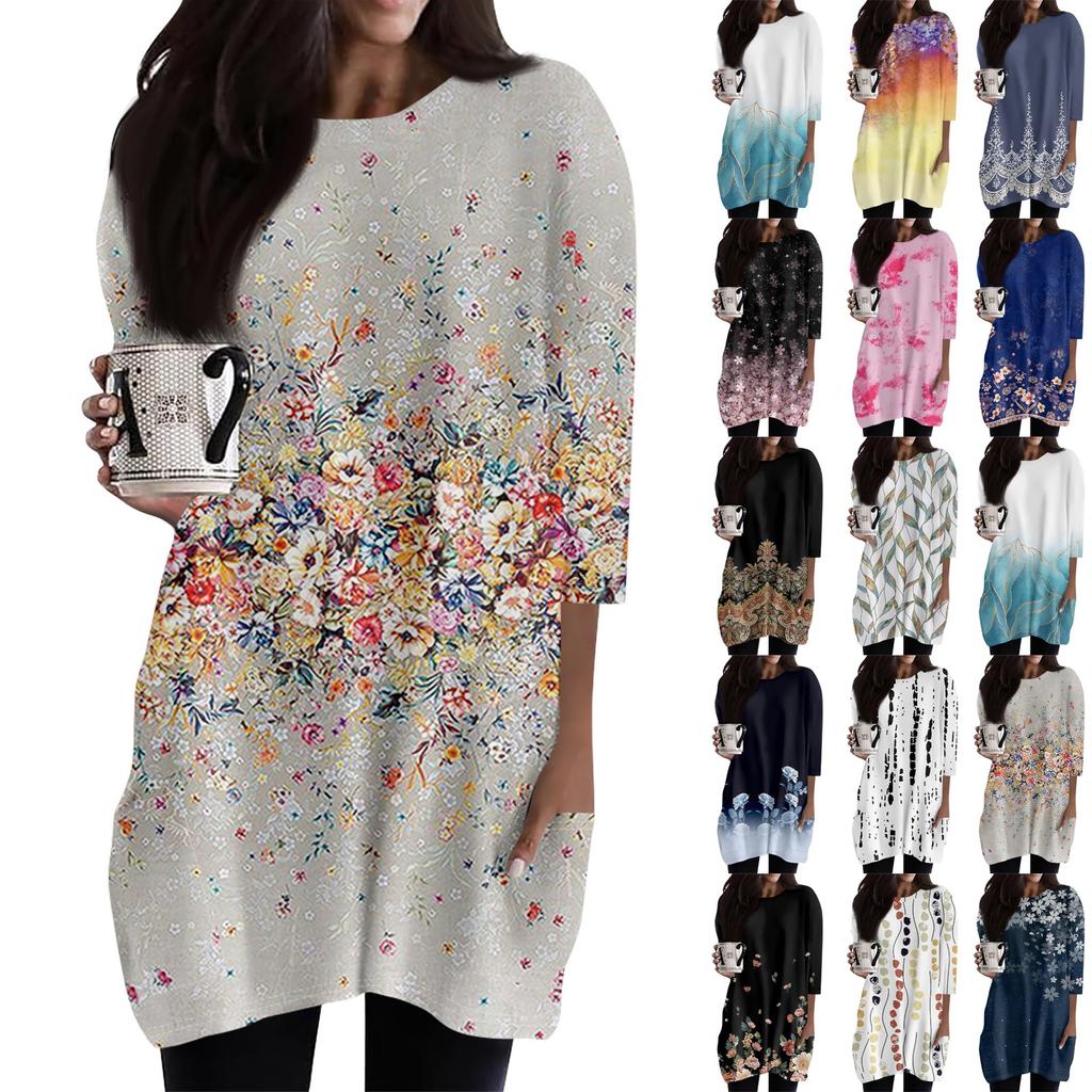 Женские повседневные рубашки с рукавами 3/4, модные туники с принтом, топы с карманами