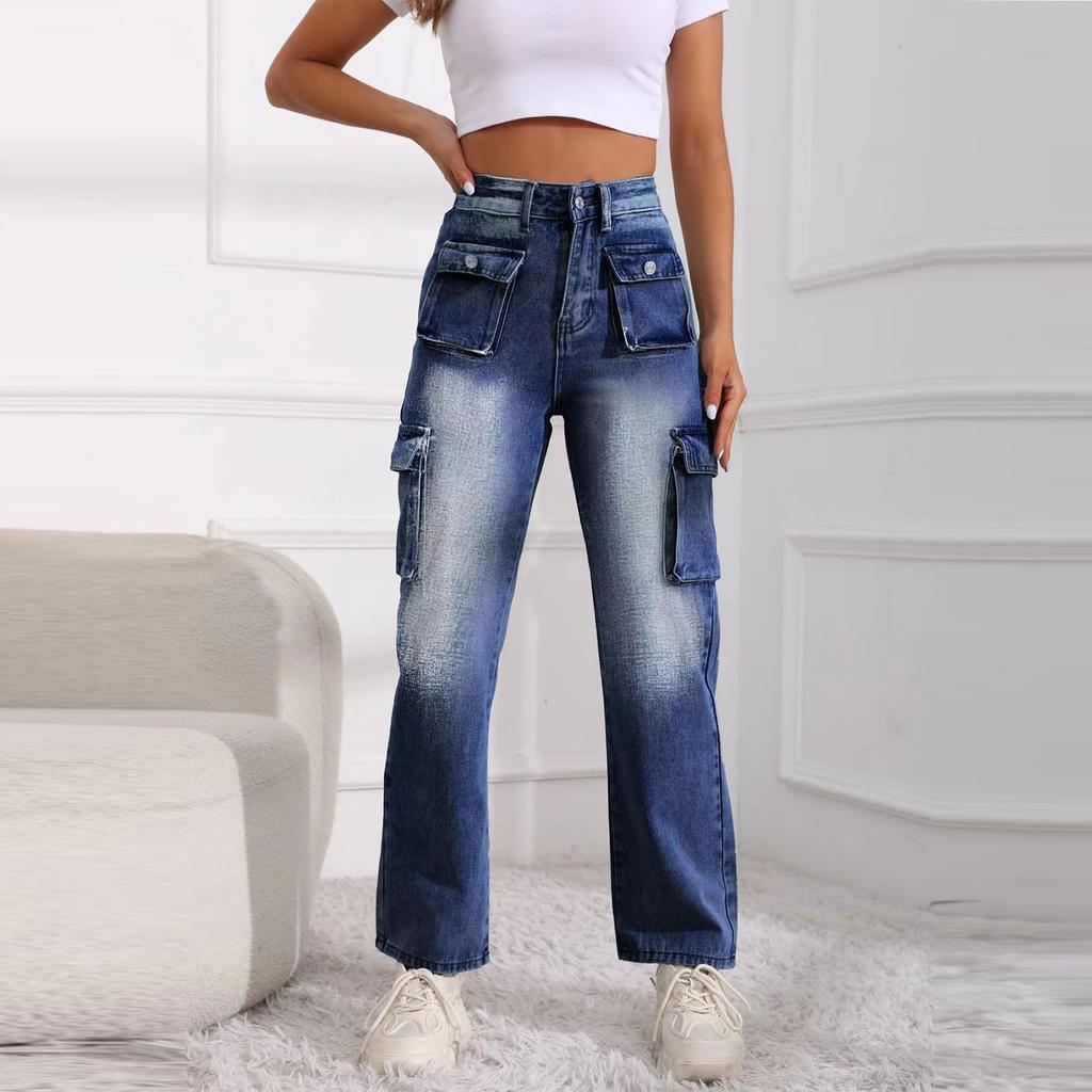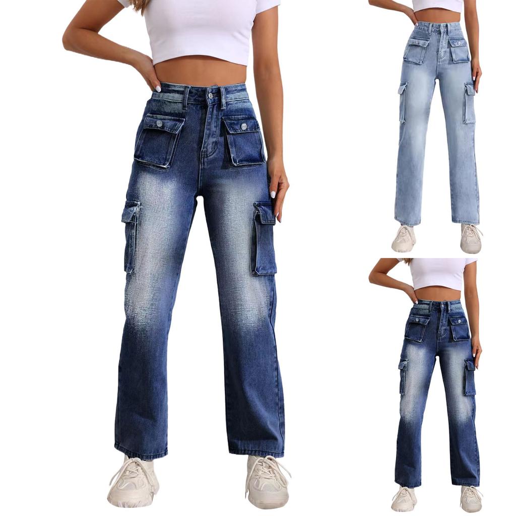 Модные мешковатые джинсы-карго с несколькими карманами для девочек