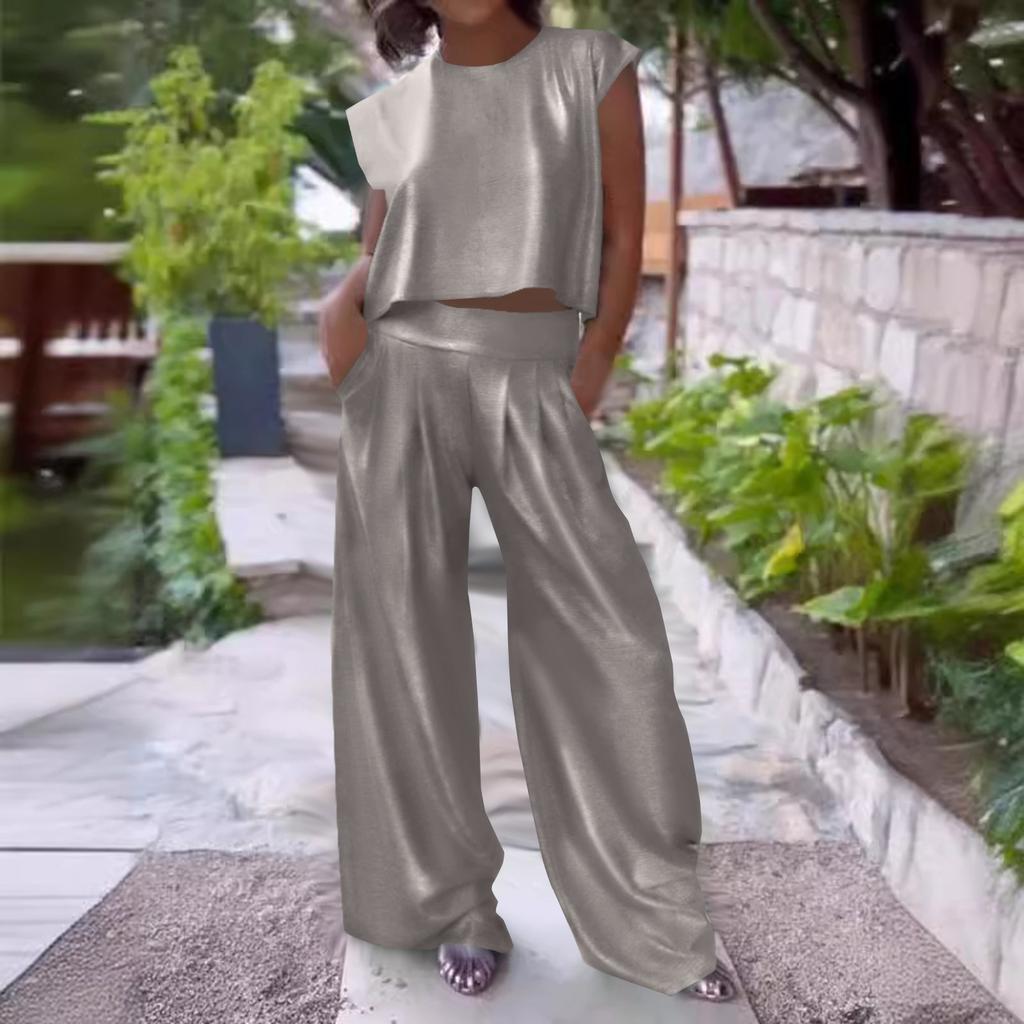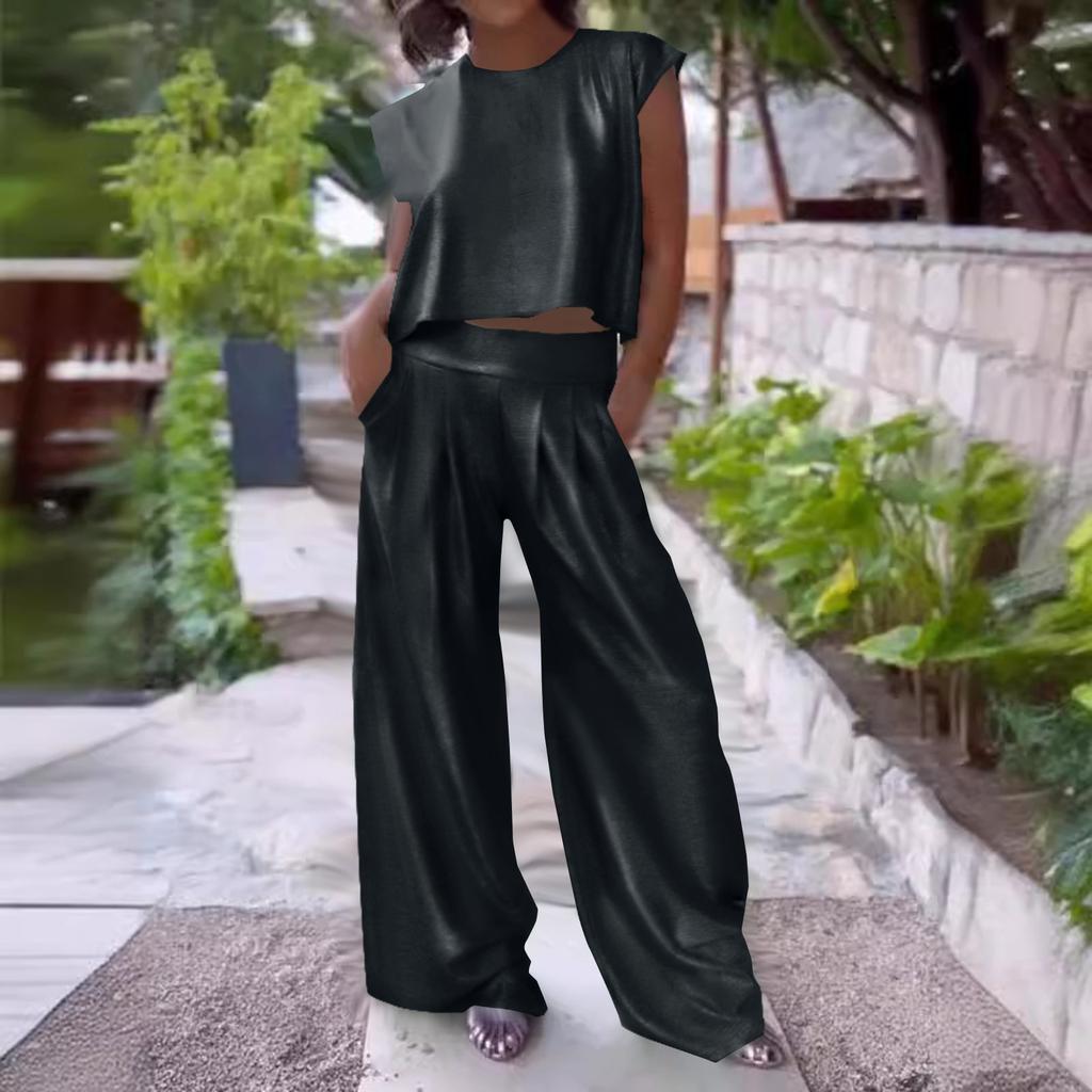 Женская мода, повседневный гладкий жилет, широкие брюки, два комплекта (2 куска)