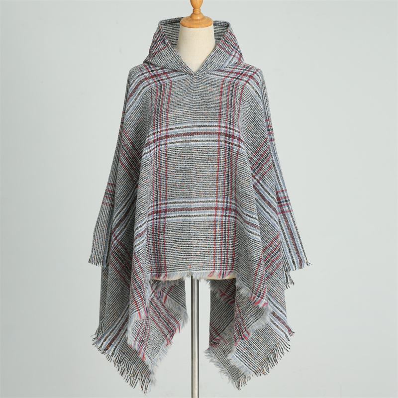 Накидка с капюшоном, клетчатый шарф, имитация кашемира, зимний с теплой шалью, пончо, накидка — купить товар онлайн с бесплатной доставкой по всему миру!