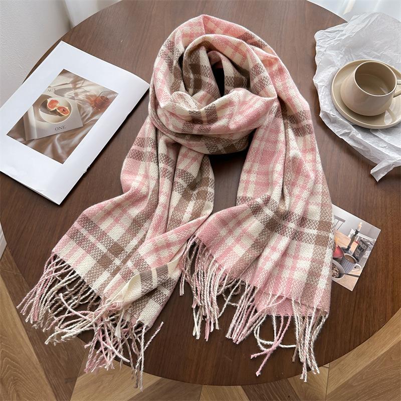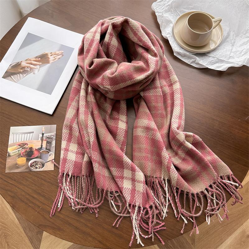 Корейский вариант клетчатого шарфа из искусственного кашемира, модный и простой, универсальный, теплый шарф, женская шаль с бахромой