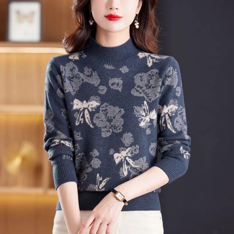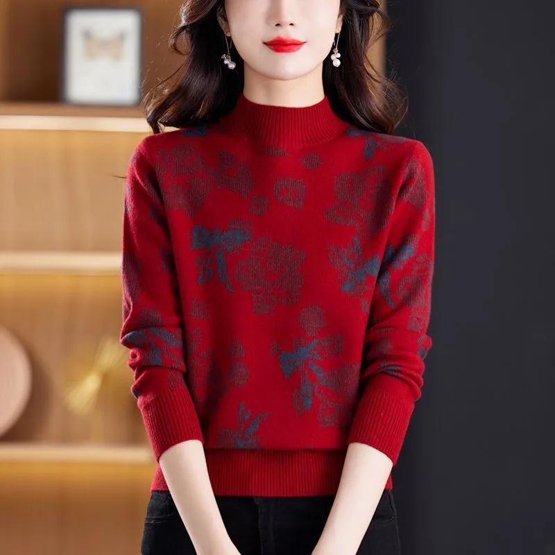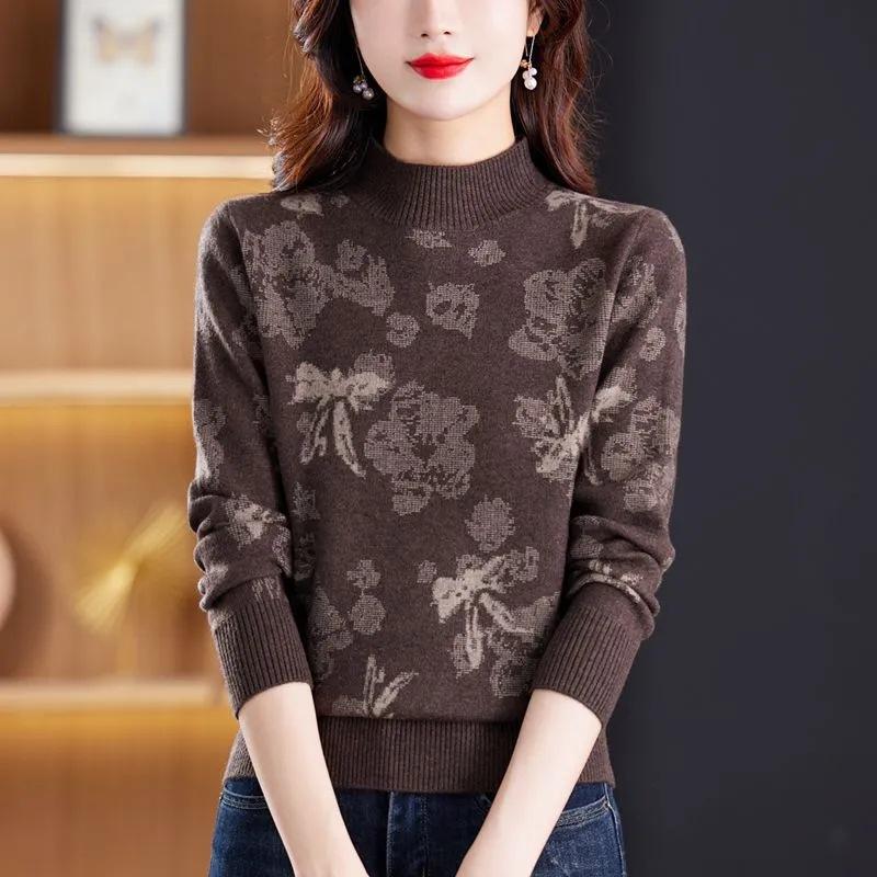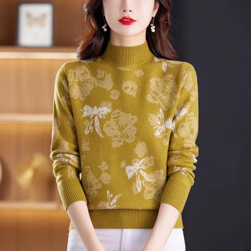 Осенне-зимний свитер с полуворотом из жаккардового кашемира, женская утолщенная модная рубашка для мам на осень и зиму
