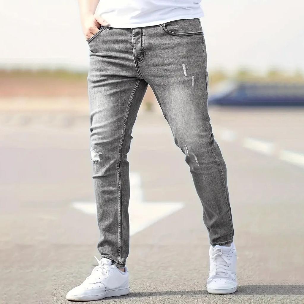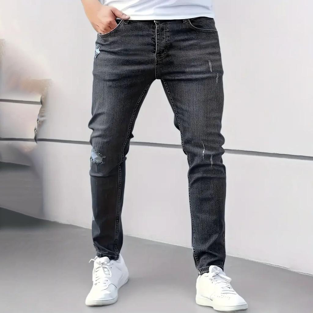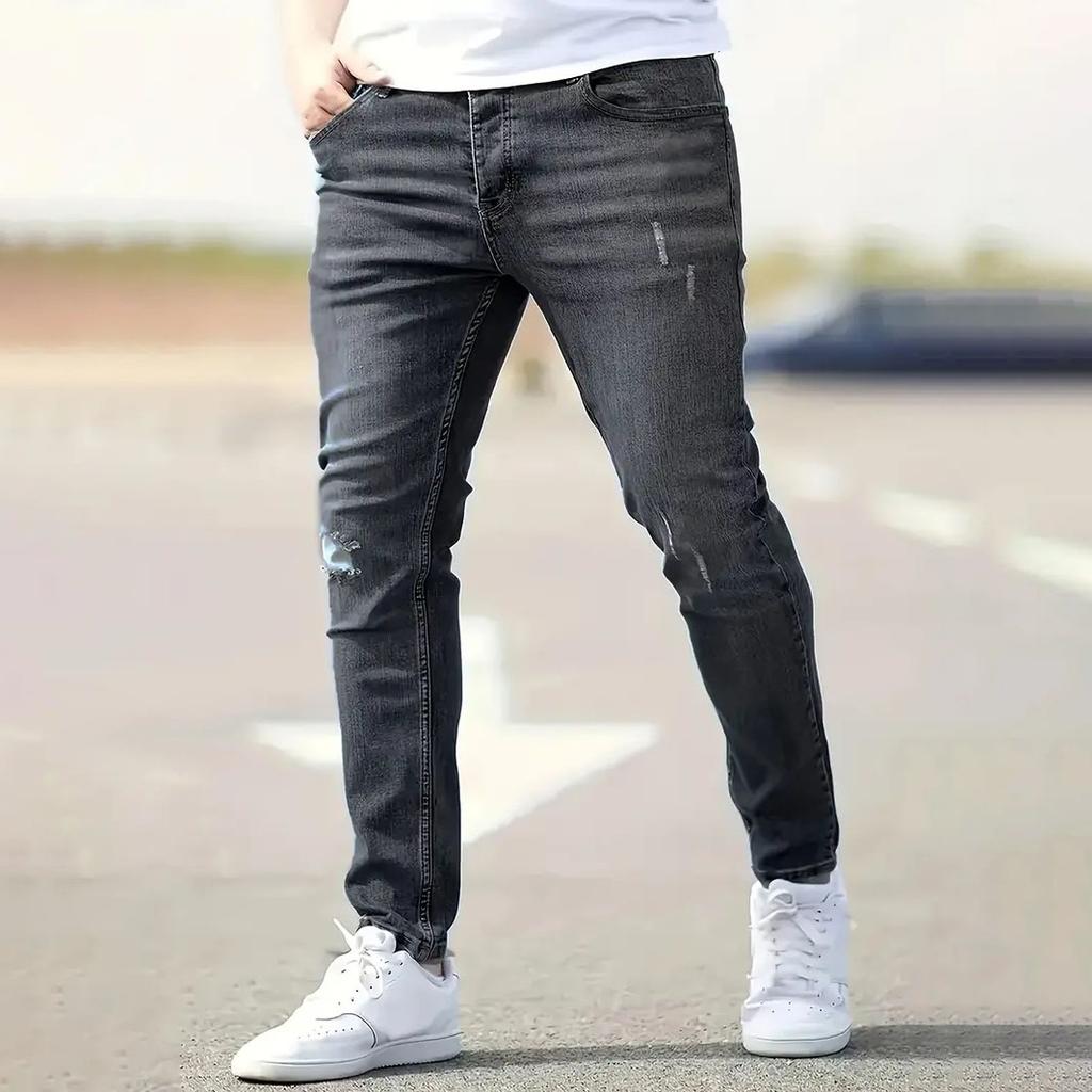 Весна и осень мужские повседневные рваные однотонные джинсы