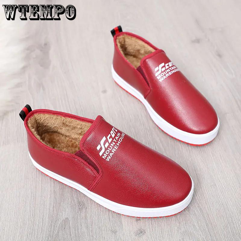 WTEMPO Женские повседневные однотонные мягкие туфли из искусственной кожи, осенне-зимние, большого размера, теплые, плюшевые, без застежек — купить товар онлайн с бесплатной доставкой по всему миру!