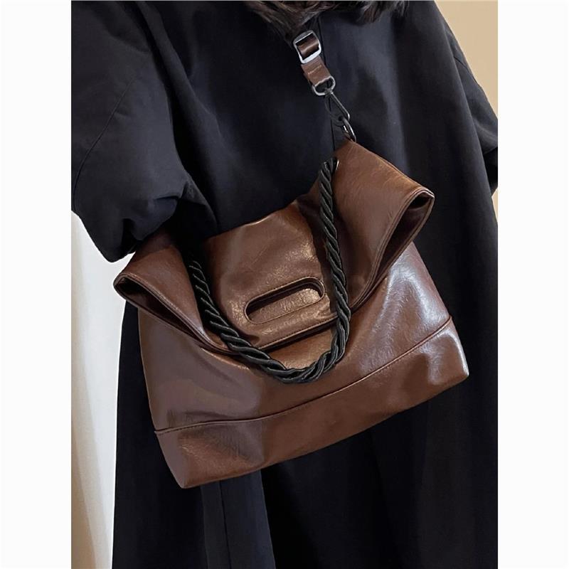 Простая ретро-коричневая сумка-тоут из мягкой кожи для поездок на работу, сумка-мессенджер в иностранном стиле 2024 года, сумка через плечо для женщин на осень и зиму