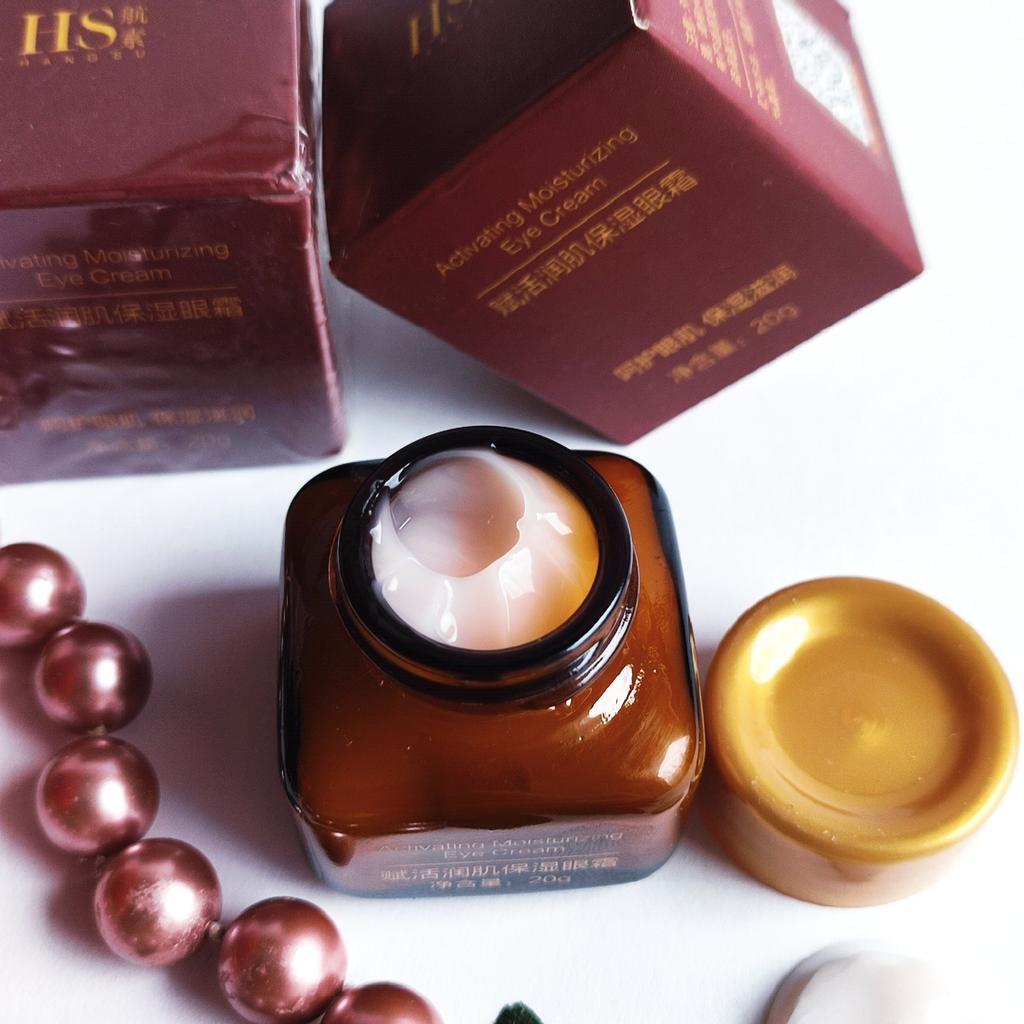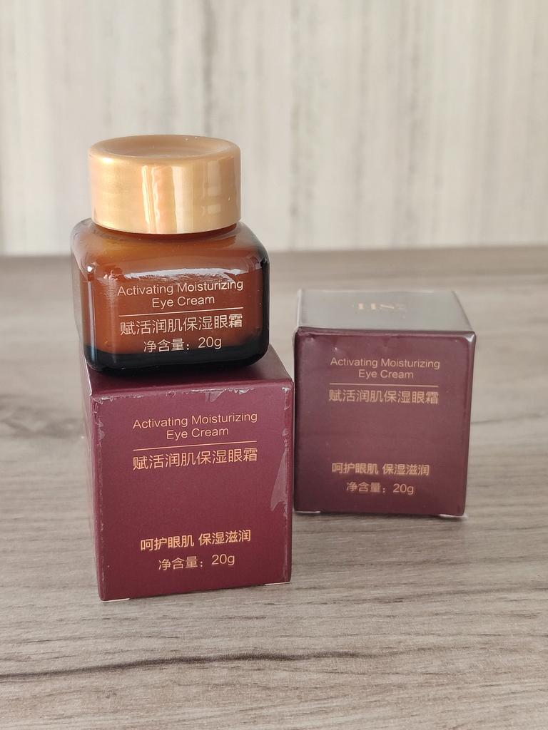 Омолаживающий и увлажняющий крем для кожи вокруг глаз. Я заказала набор из двух упаковок крема, можно заказать 1 баночку. Объём каждой баночки 20 г. Крем в стеклянной баночке, упакован в коробочку и запаян слюдой, аромат очень нежный и приятный, пользоваться этим кремом - одно удовольствие. Консистенция крема нежнейшая, очень приятная, отлично распределяется по коже, расход экономичный. После нанесения крема на кожу, он достаточно быстро впитывается, лишь оставляет на коже приятный эффект напитанности, никакой липкости и плёнки, и важно, что он не жирнит кожу, а отлично увлажняет и делает её гладкой и нежной. Крем подходит для использования день/ночь, то есть 2 раза в день. Наносить его нужно лёгкими похлопывающими движениями на очищенную кожу вокруг глаз. Я пользуюсь кремом 1-2 раза в день, утром и вечером, и мне он безумно нравится, увлажнение, питание, и как результат - гладкая и напитанная кожа. Даже тёмные круги становятся немного светлее, возможно благодаря тому, что сама кожа как будто плотнее, после использования крема. Доставка заняла месяц до отделения Укрпочты, соборная посылка Joom. Срок годности до 29.10.2027 года. Вся информация на упаковке на китайском языке.