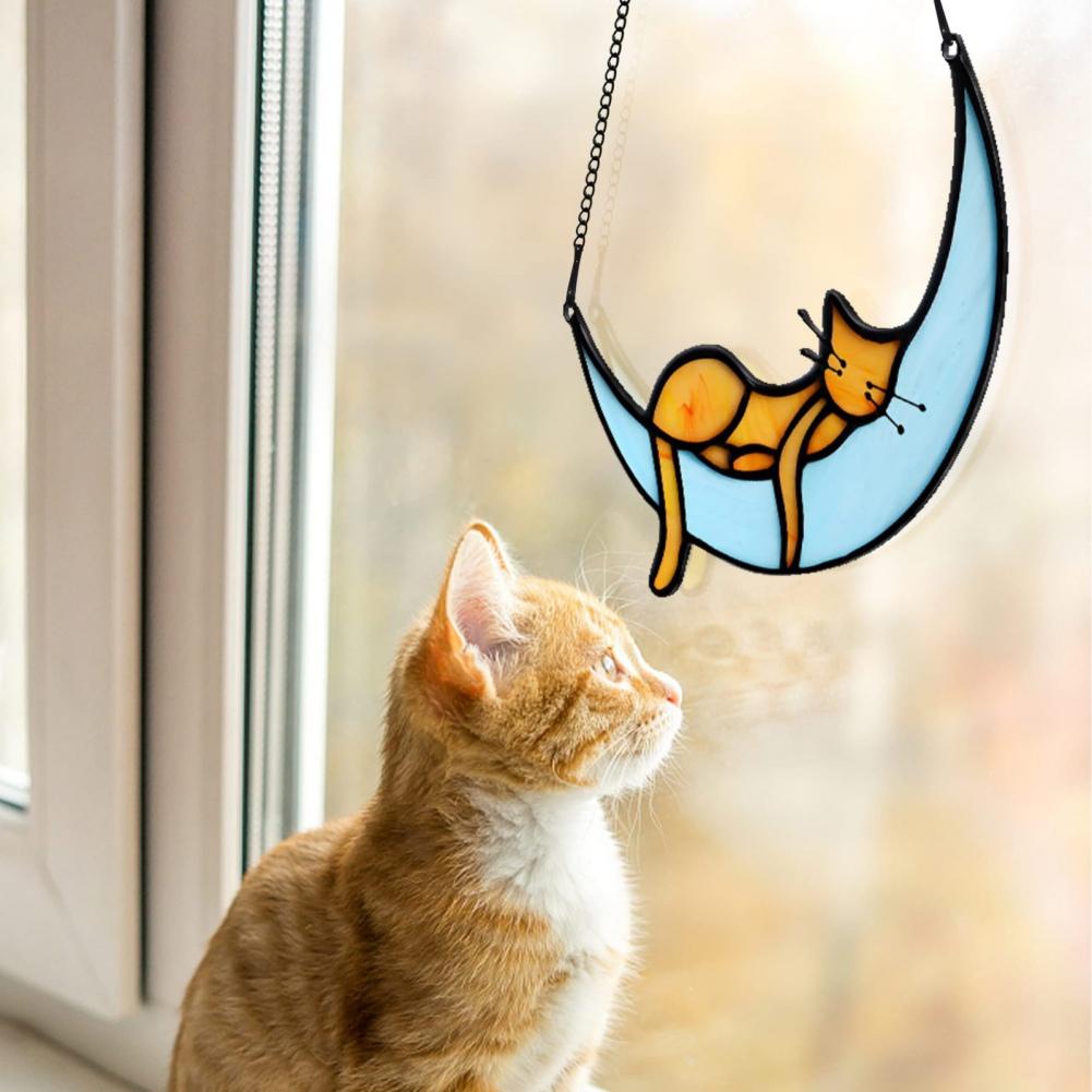 Акриловые украшения в стиле бохо с рисунком кошки на луне, подвесные наклейки на окна, ловец солнца, подарок любителю кошек, подарки для домашних животных, украшение для дома