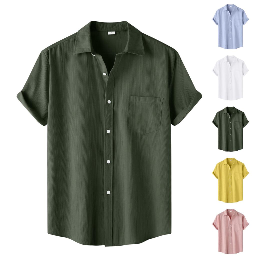 Мужская повседневная однобортная рубашка в полоску с одним карманом и короткими рукавами — купить товар онлайн с бесплатной доставкой по всему миру!