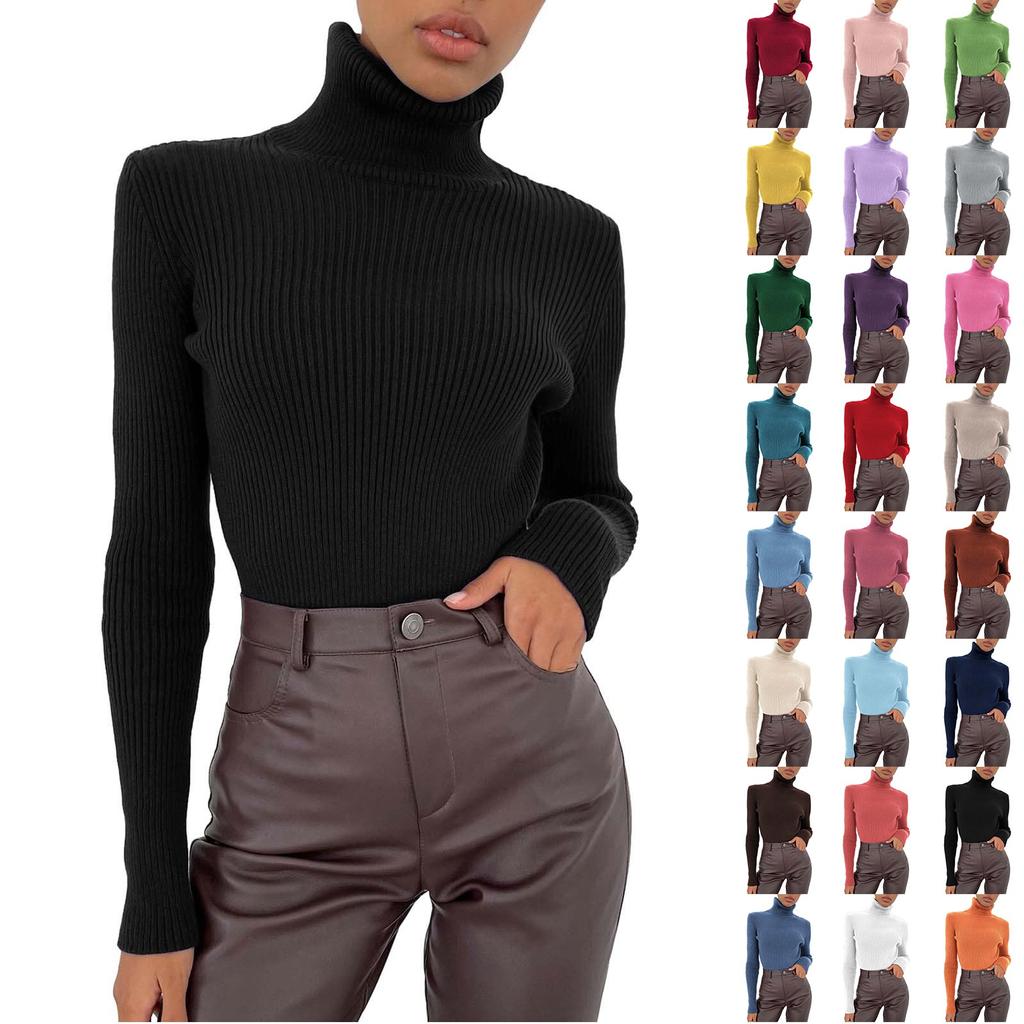Женский однотонный свитер с высоким воротом и длинными рукавами, пуловер, вязаная верхняя футболка с подкладкой
