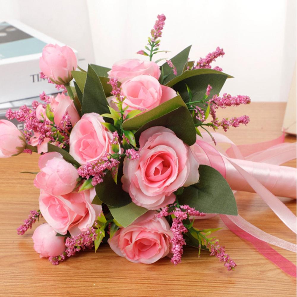 Романтический свадебный букет, имитация цветка, свадебный букет с лентой, свадебная вечеринка, реквизит для фотосессии, искусственные розы ручной работы, помолвка