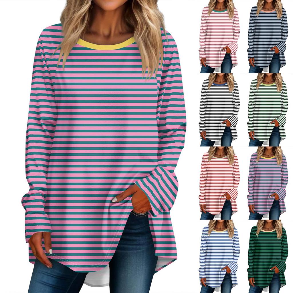 Женская негабаритная полосатая рубашка с длинными рукавами и круглым вырезом, полосатая футболка, верхний пуловер — купить товар онлайн с бесплатной доставкой по всему миру!