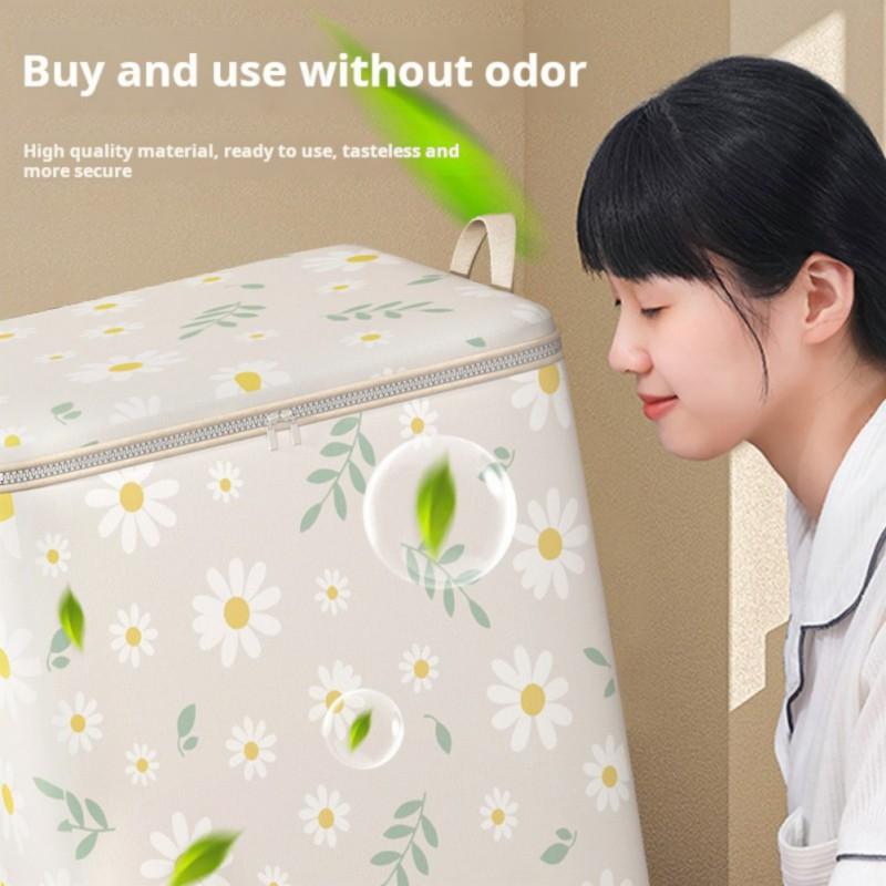 Коробка для хранения с рисунком ромашки из мультфильма, большая вместимость, органайзер на молнии, универсальный пылезащитный контейнер, сумки для хранения одежды и гардероба