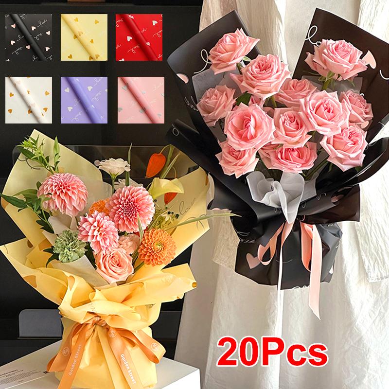 20 шт. упаковочный материал для букетов 57x57 см. Цветочная упаковка ко Дню святого Валентина. Сделай сам. Упаковка для подарков с принтом «Любовь». Цветочная упаковочная бумага.