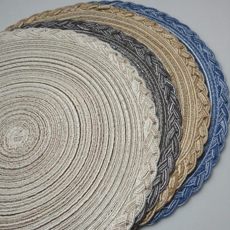 38 см противоскользящие коврики для обеденного стола, круглый коврик для стола, плетеные салфетки из рами, нескользящие подставки для посуды, подставки для мисок, подставки для чашек на кухне