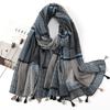 Литературный небольшой свежий хлопковый и льняной ретро-шарф с бахромой, женский напечатанный красивый шелковый шарф, японская солнцезащитная шаль