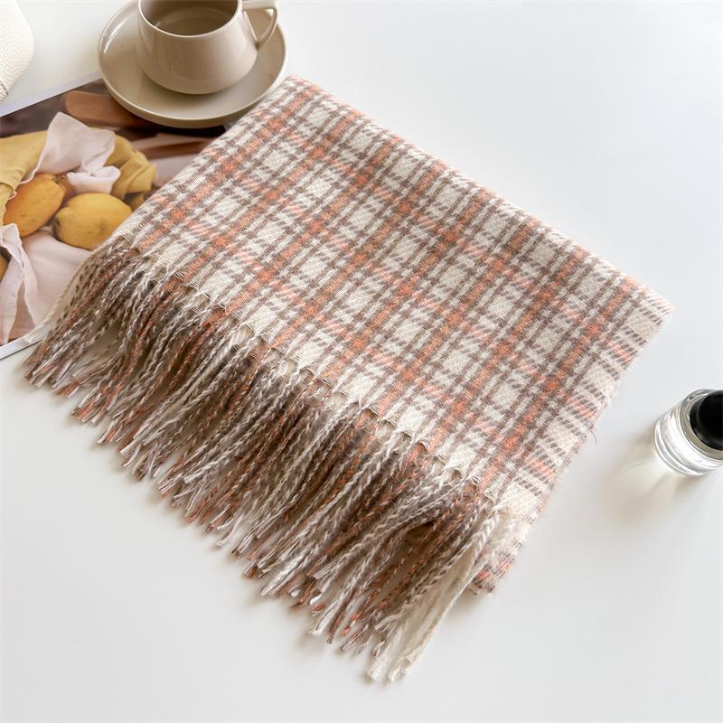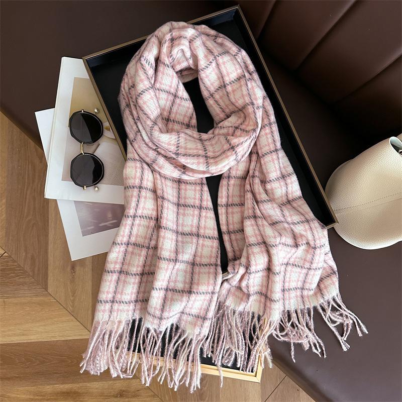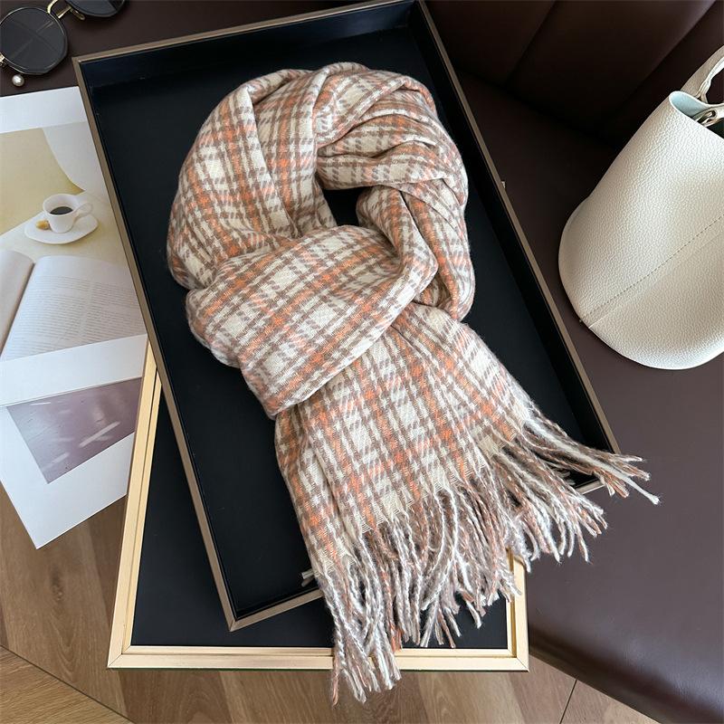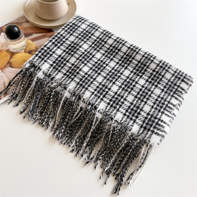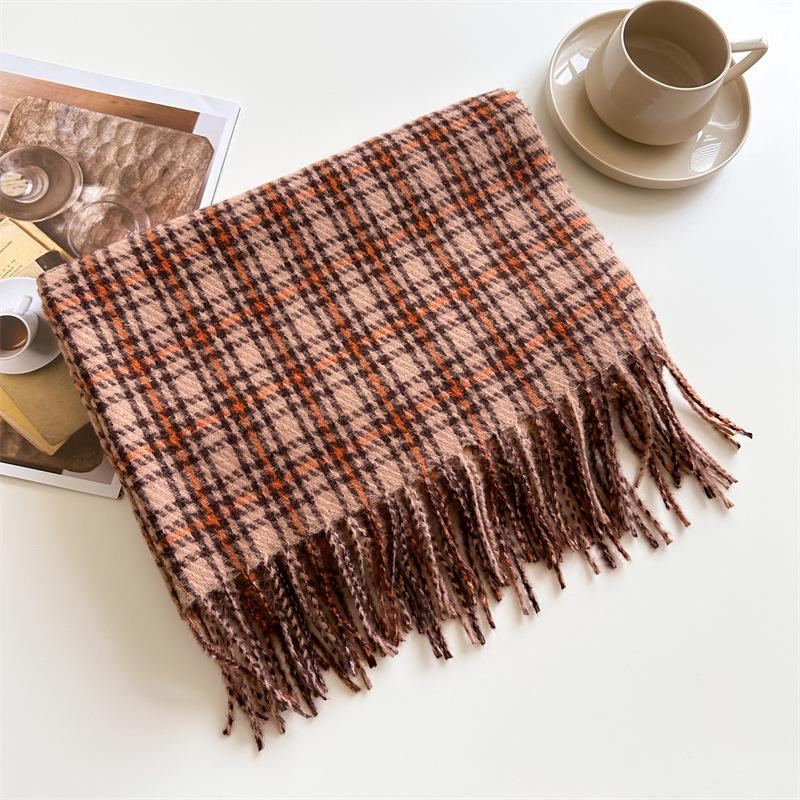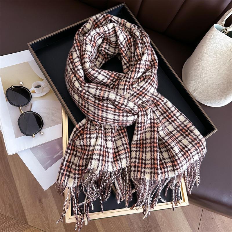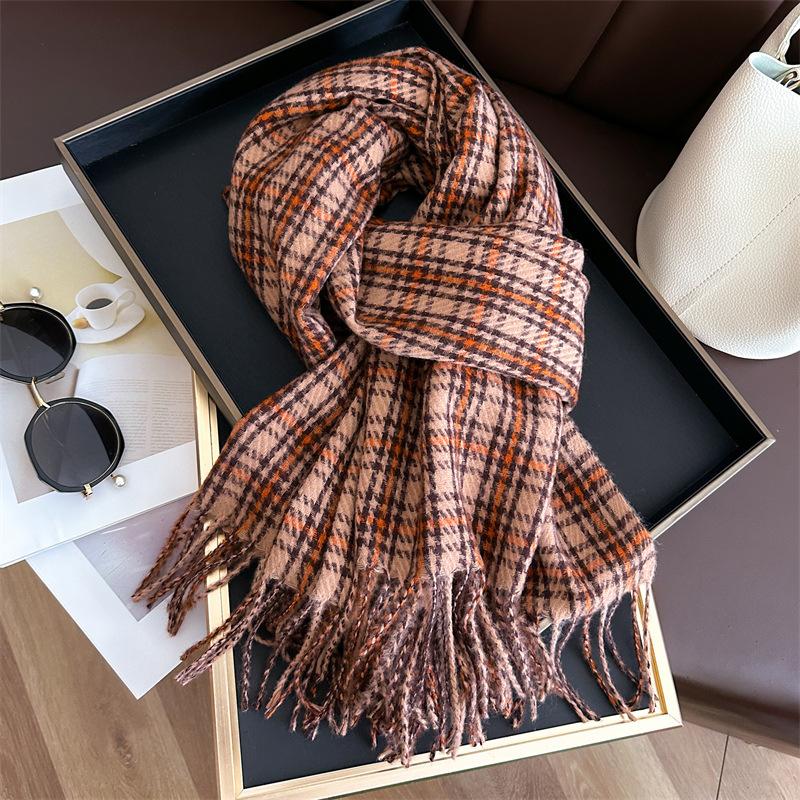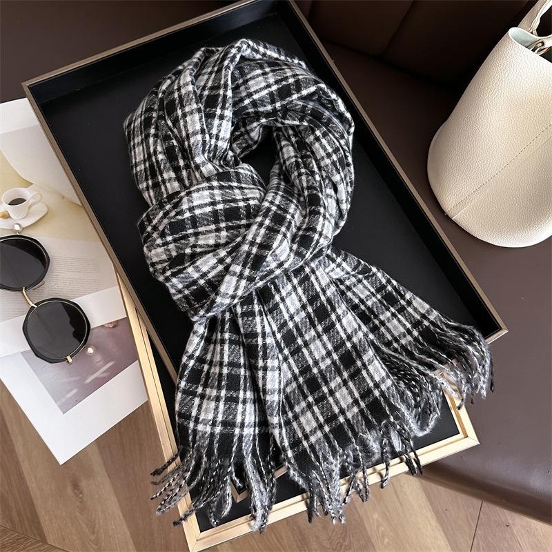 Ретро имитация кашемира клетчатый теплый шарф-шаль унисекс модный универсальный шарф с бахромой
